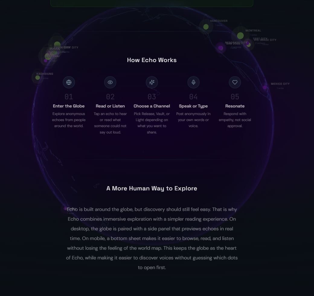 Echo is an anonymous voice platform where people share what they can't say out loud. No accounts,...