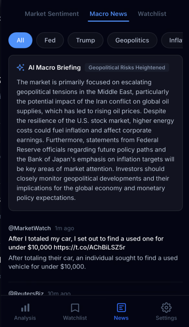 MarketSensor is an AI-powered trading analysis platform for U.S. stocks and crypto, built for swi...