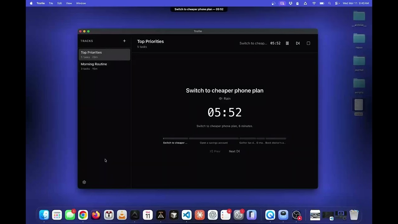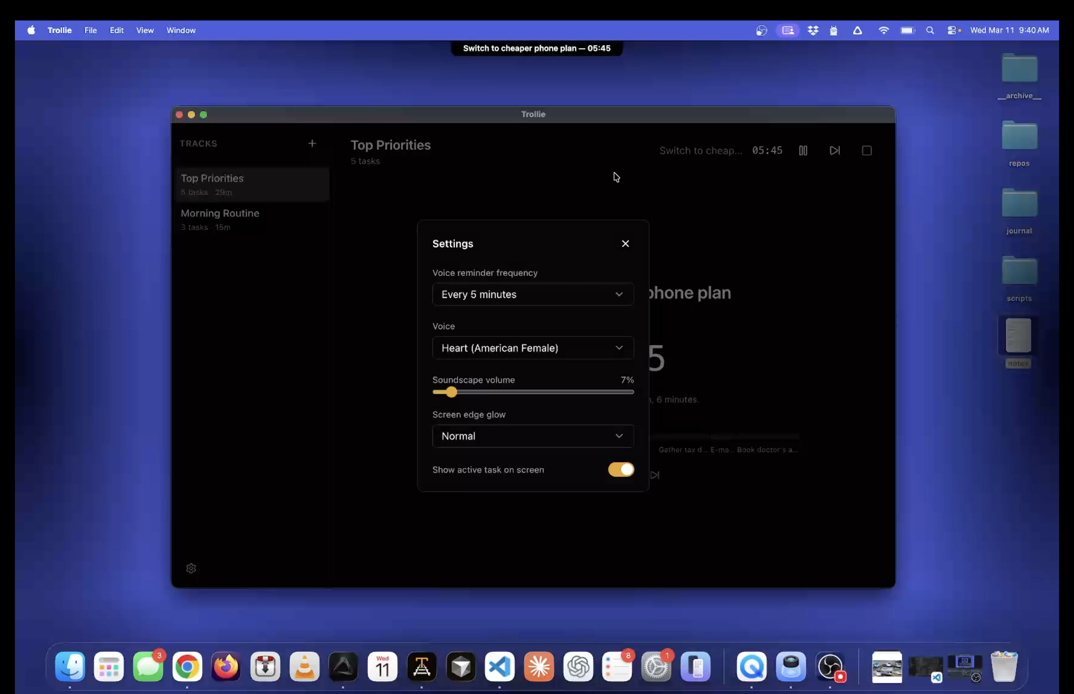 Trollie is a macOS desktop app that combats digital distraction through immersive, audio-guided f...