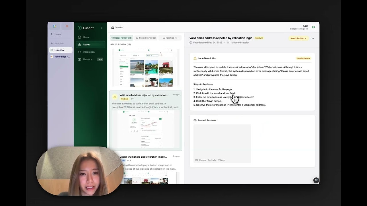 Lucent is an AI that watches your session replays 24/7, and automatically detects issues your use...