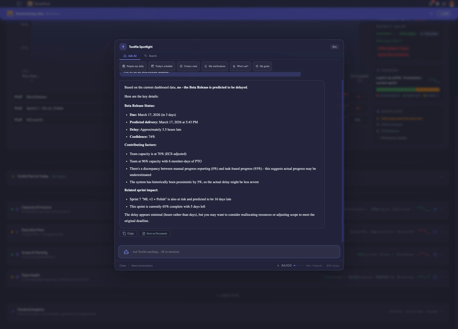 Toolfie connects to Jira, GitHub, calendar & time tracking, then runs 5,000 Monte Carlo simulatio...