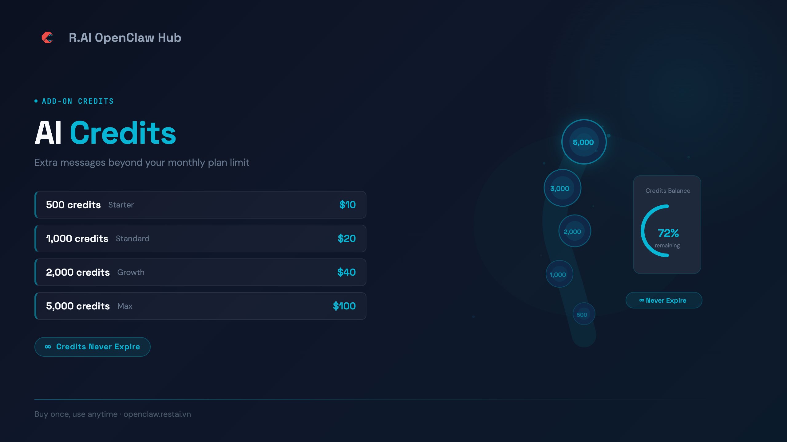 Your AI assistant on any messenger — fully managed. OpenClaw Hub bundles everything: VM, AI credi...