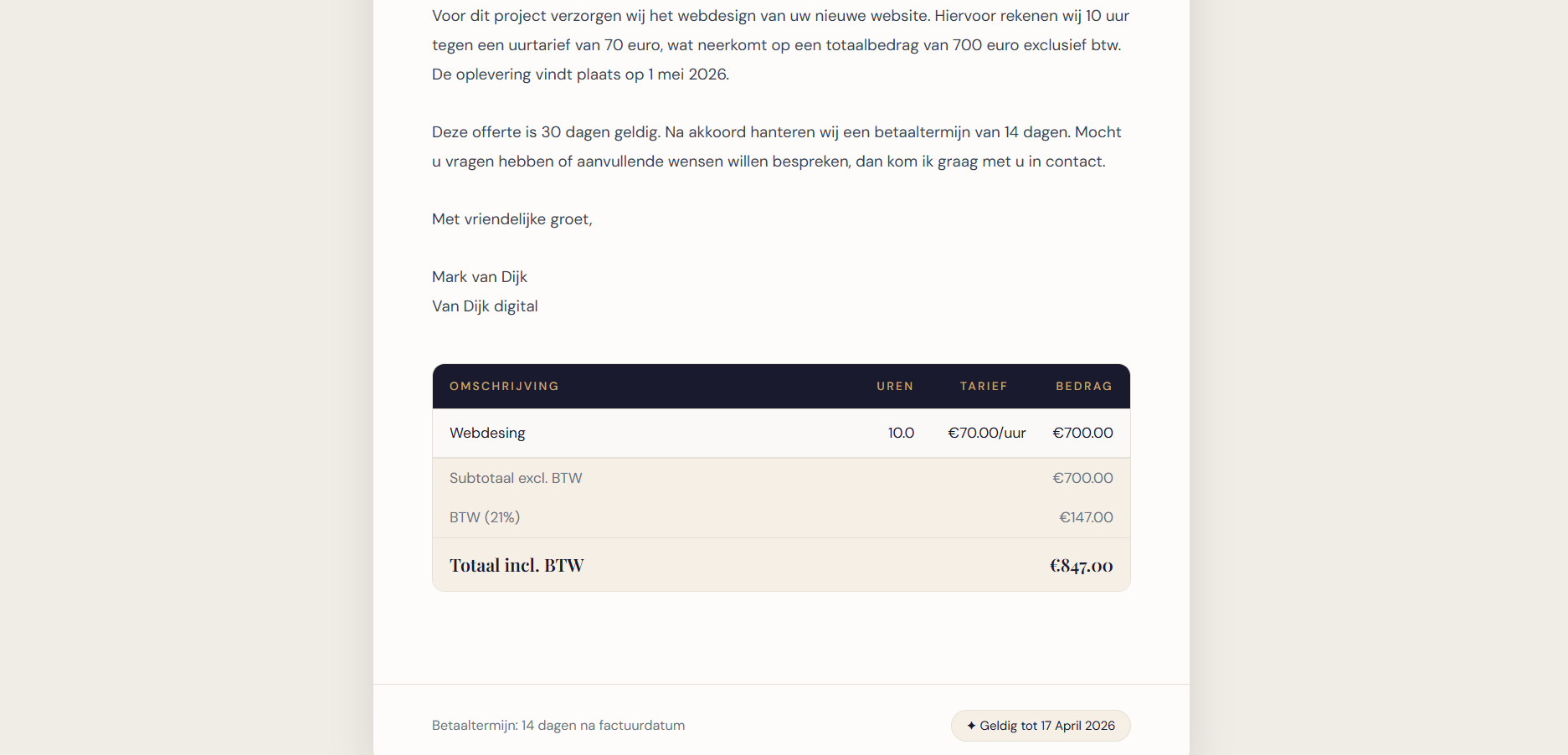 AI quote generator for Dutch freelancers