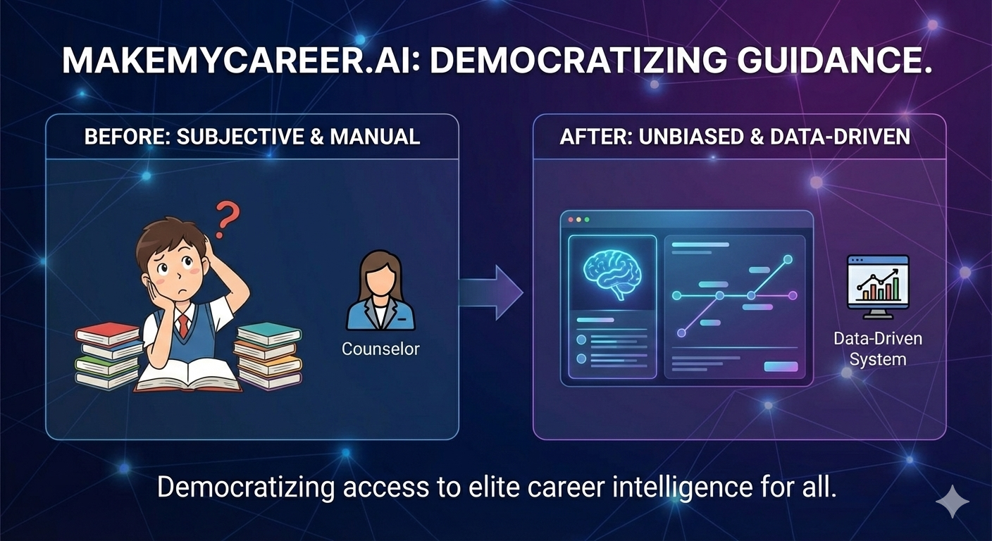 MakeMyCareer.AI uses GPT-5 level AI to guide students through a 7-step career discovery journey —...