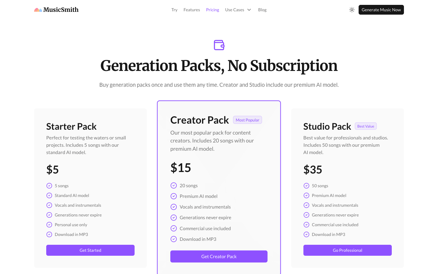 Create songs from text. Pay per track, no subscription.