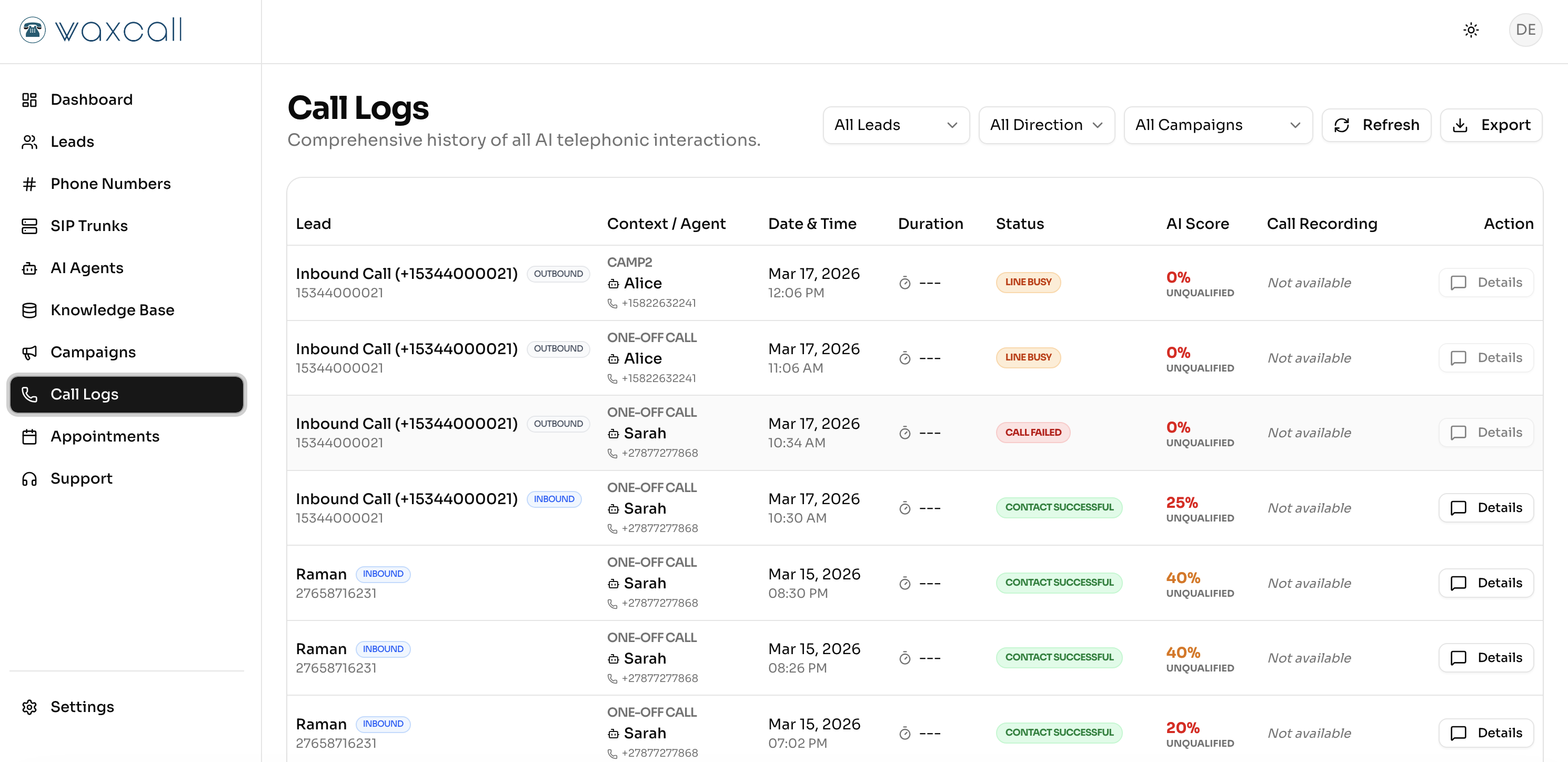 Waxcall Calling AI Agents