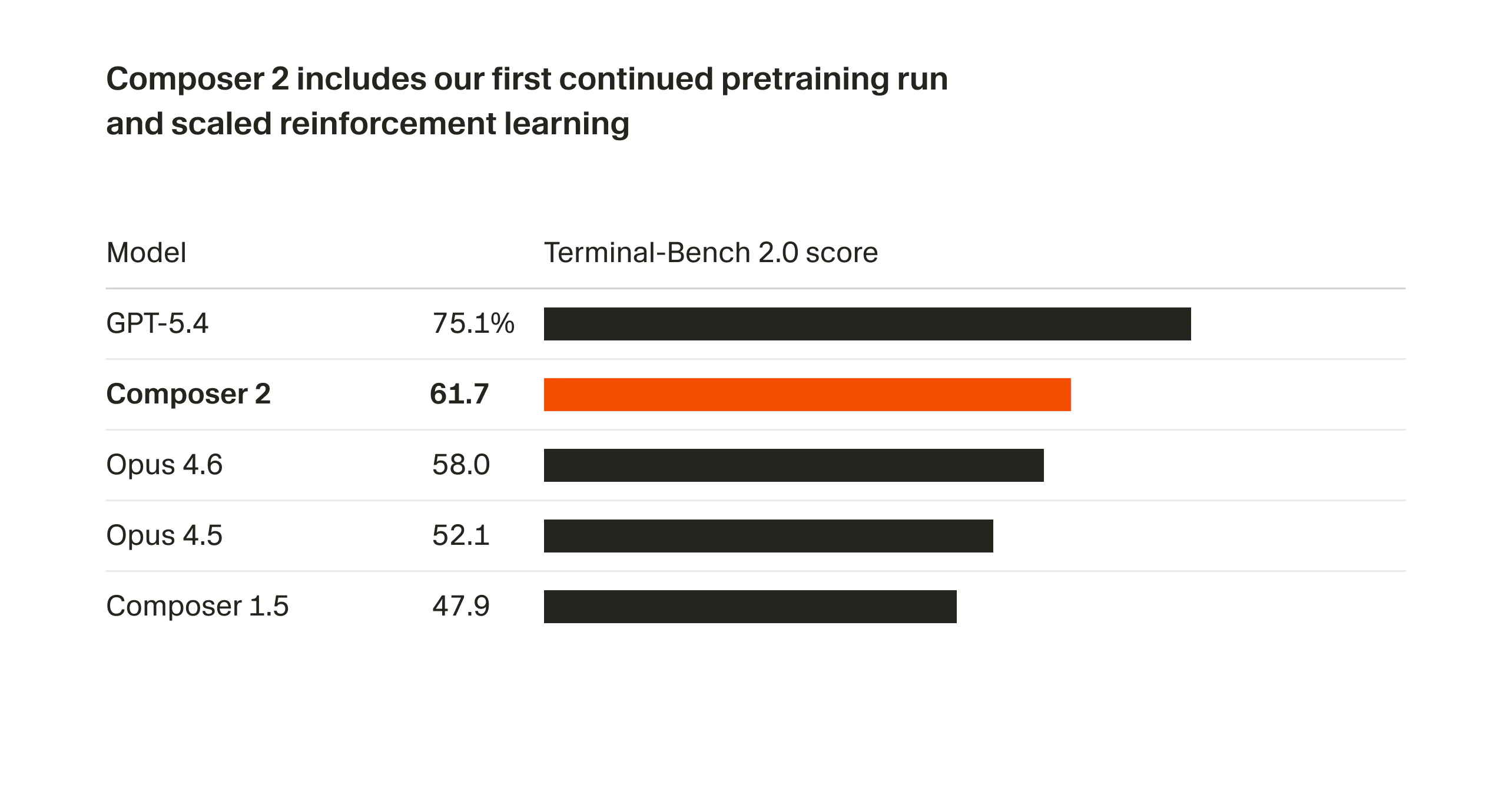 Composer 2 is now available in Cursor: frontier-level coding performance with strong results on c...