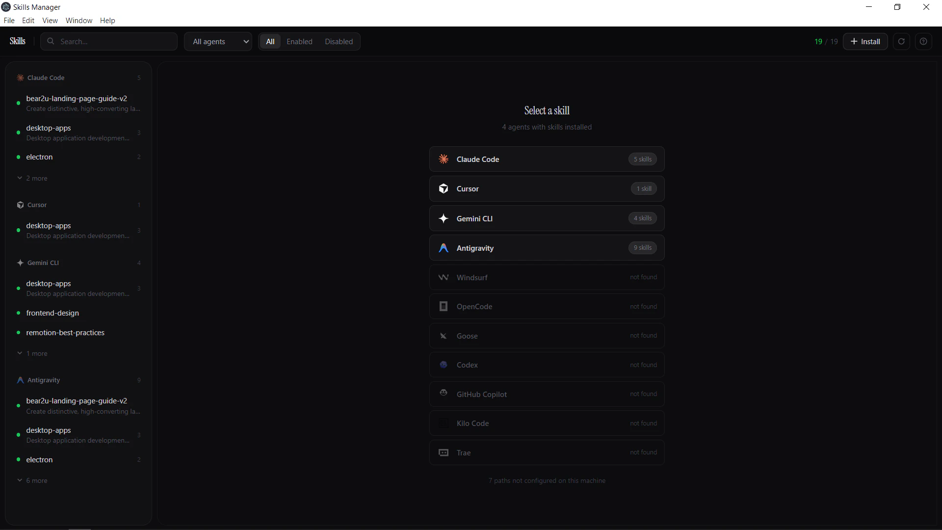 Browse, install, enable, and share AI agent skills across all major coding agents in one desktop ...