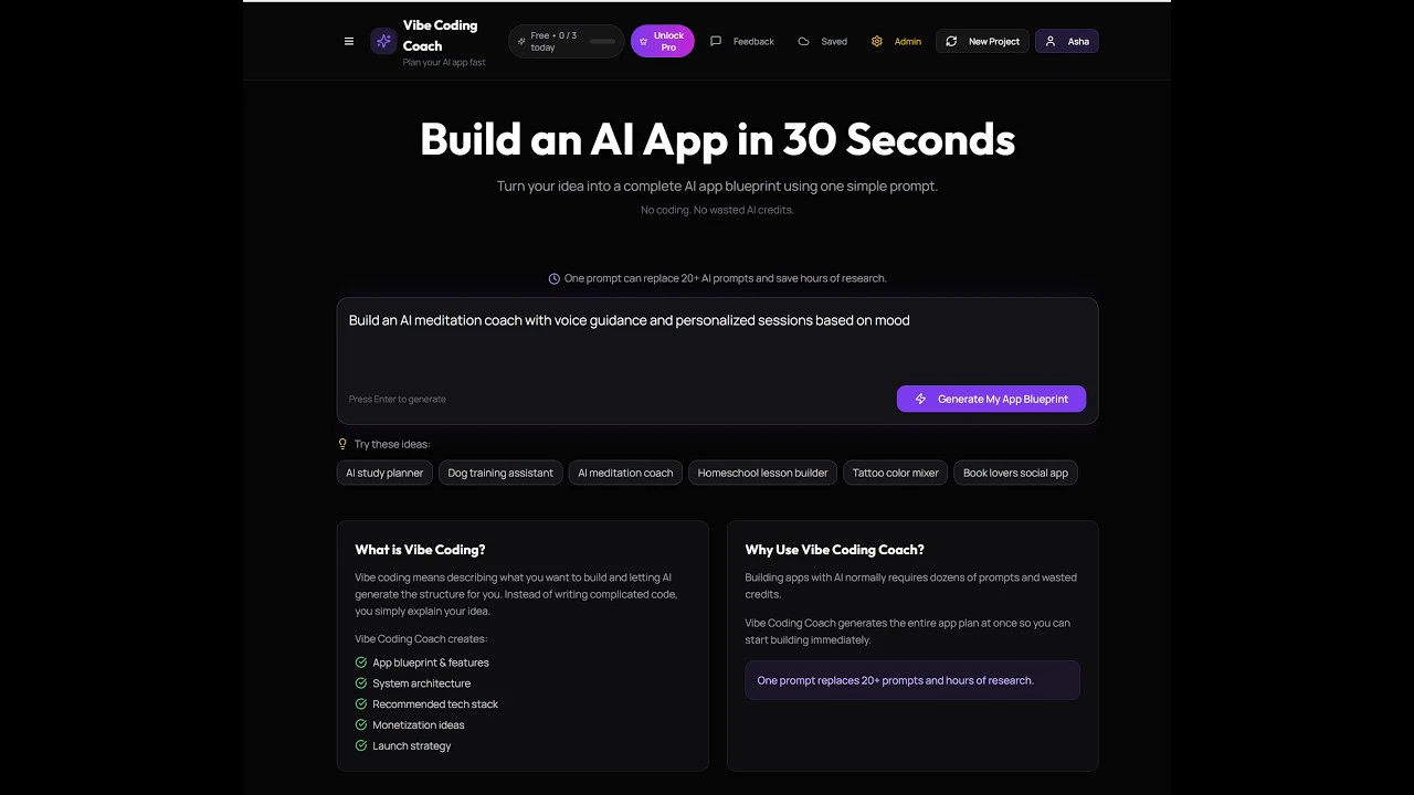 Vibe Coding Coach helps you turn ideas into structured app blueprints instantly. Instead of getti...
