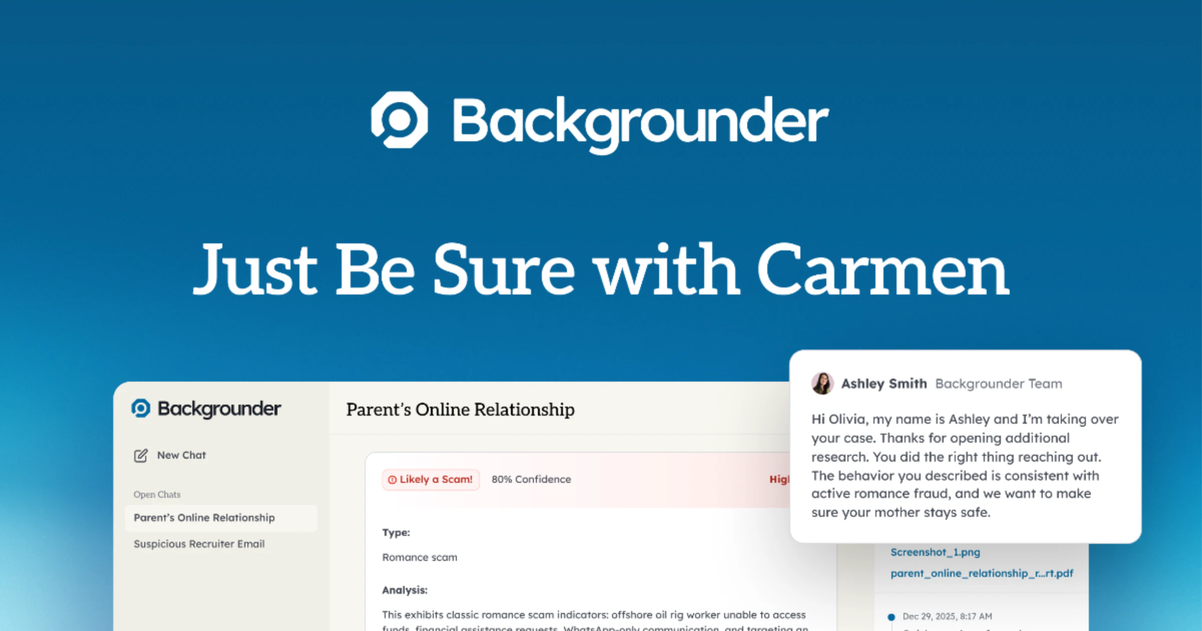 Verify messages, people, and businesses fast with Backgrounder. AI-powered scam detection backed ...