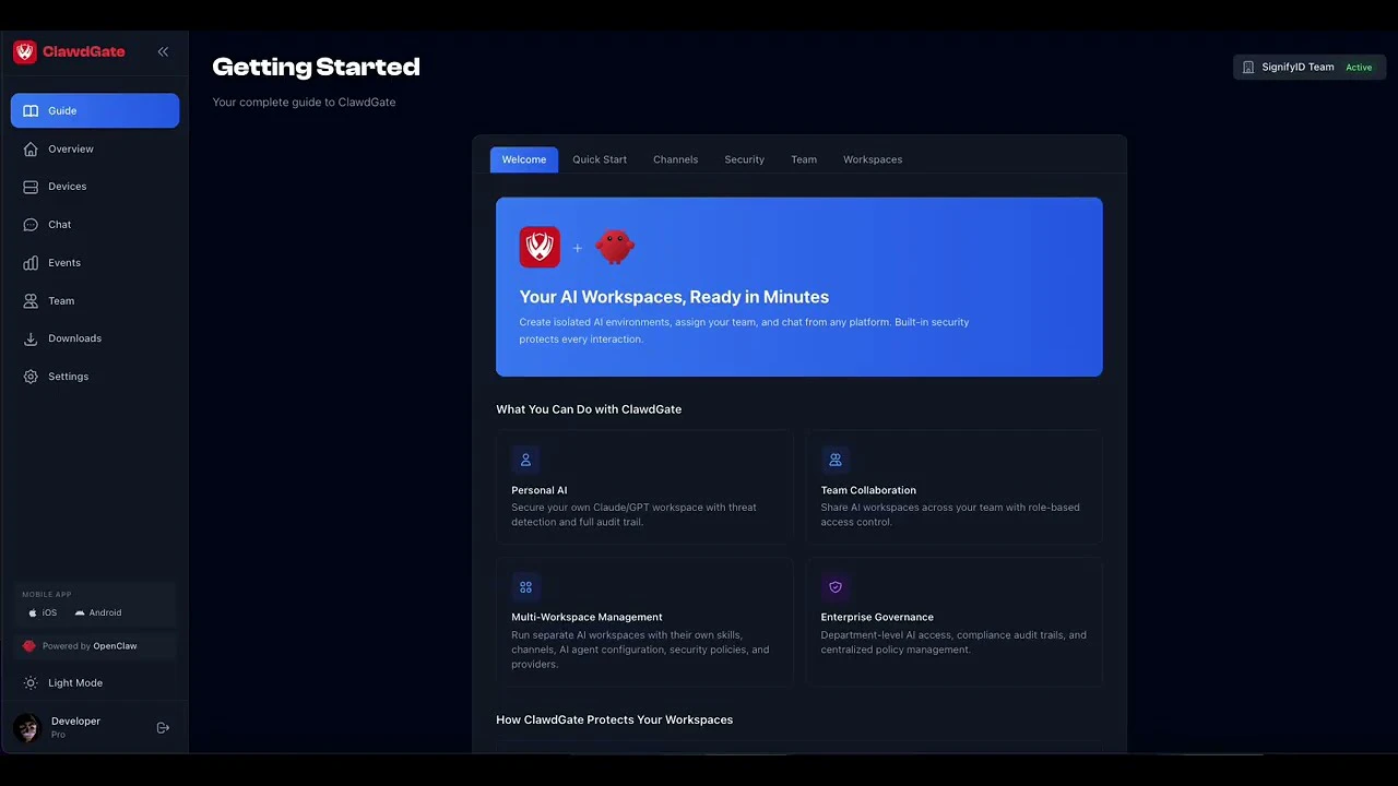 ClawdGate is a security and collaboration platform for teams running AI agents at scale. Manage i...