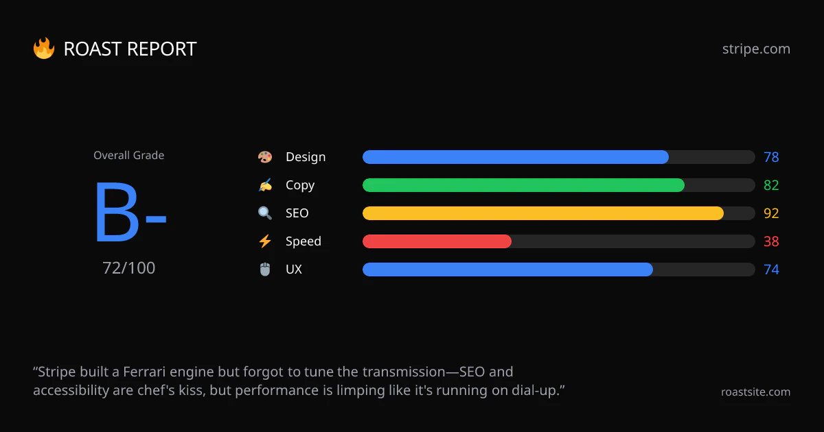 Get a brutally honest AI review of your website in 30 seconds. RoastSite analyzes Design, Copy, S...