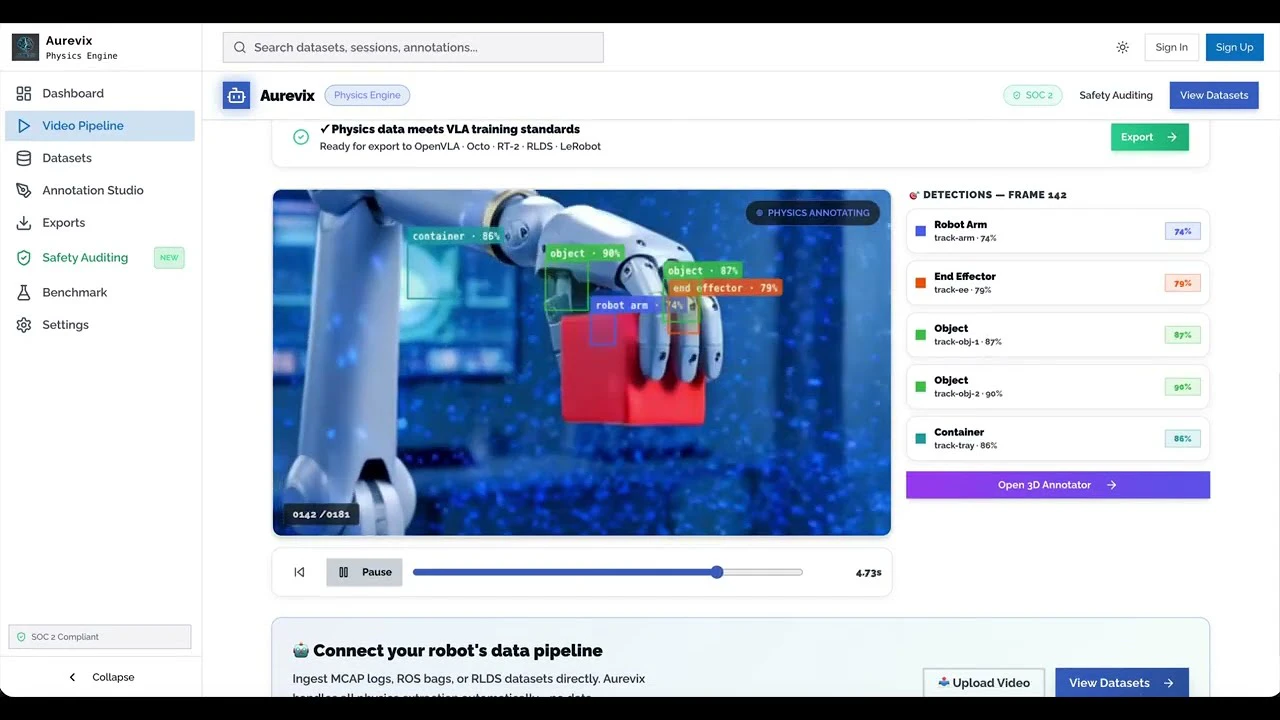 Annotate 10 minutes of multi-sensor robot data in under 2 minutes. 100× faster, 90% cheaper, with...