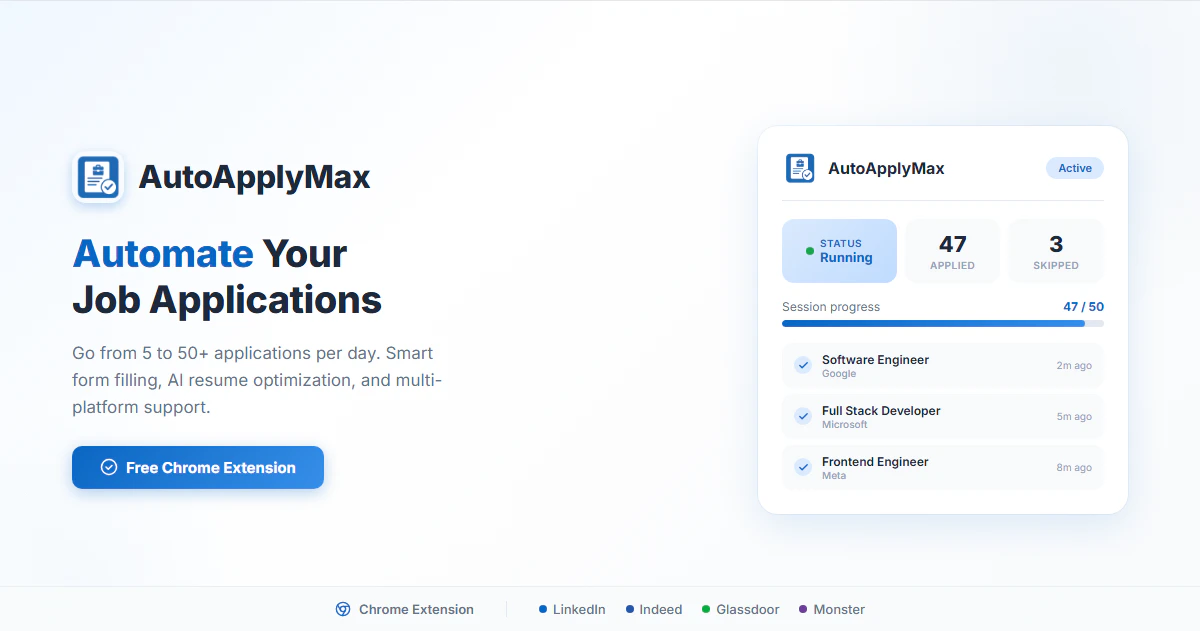 We built AutoApplyMax because job searching shouldn't take hours. Install our free Chrome extensi...