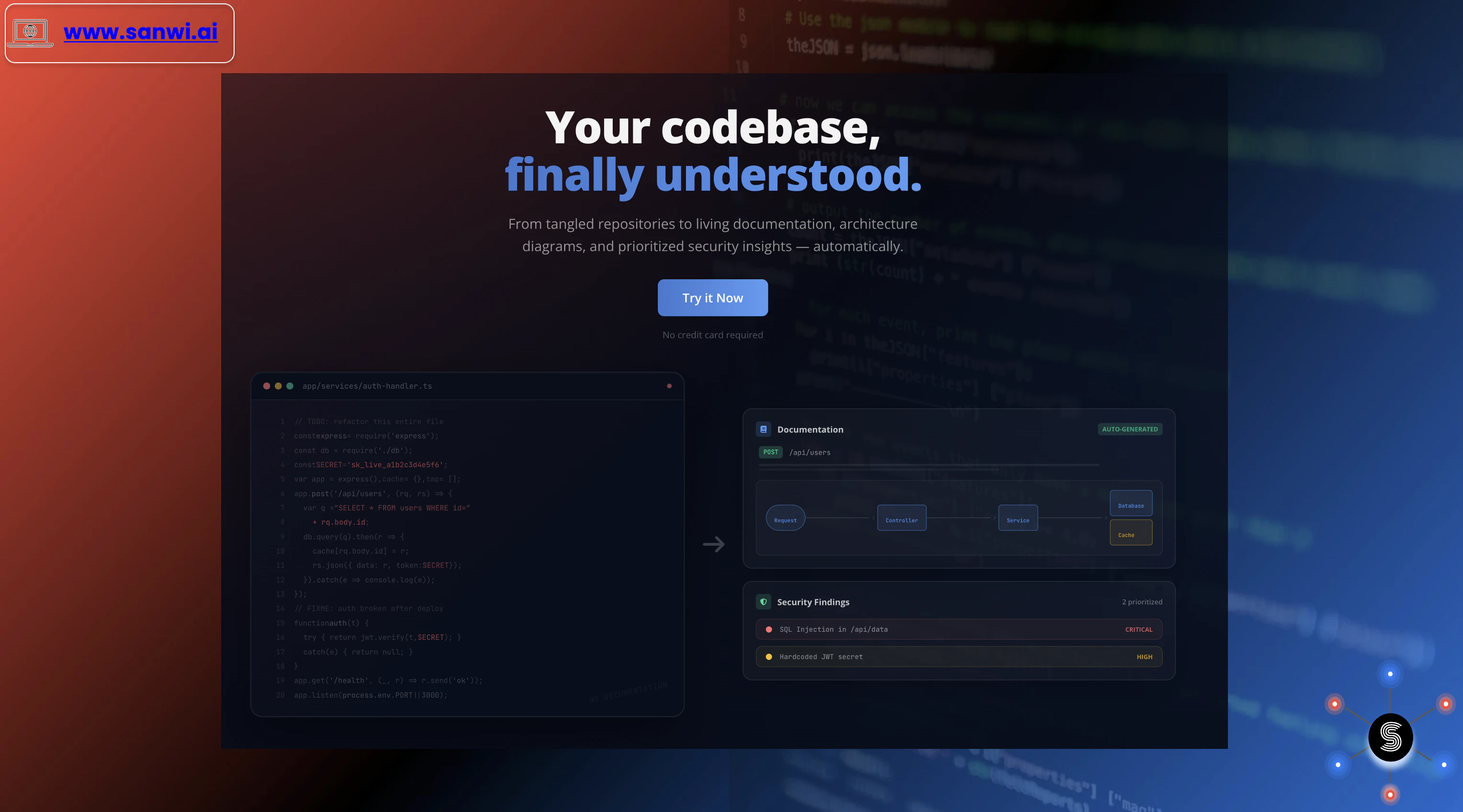 Sanwi is an AI-powered platform that turns your codebase into always‑up‑to‑date technical documen...