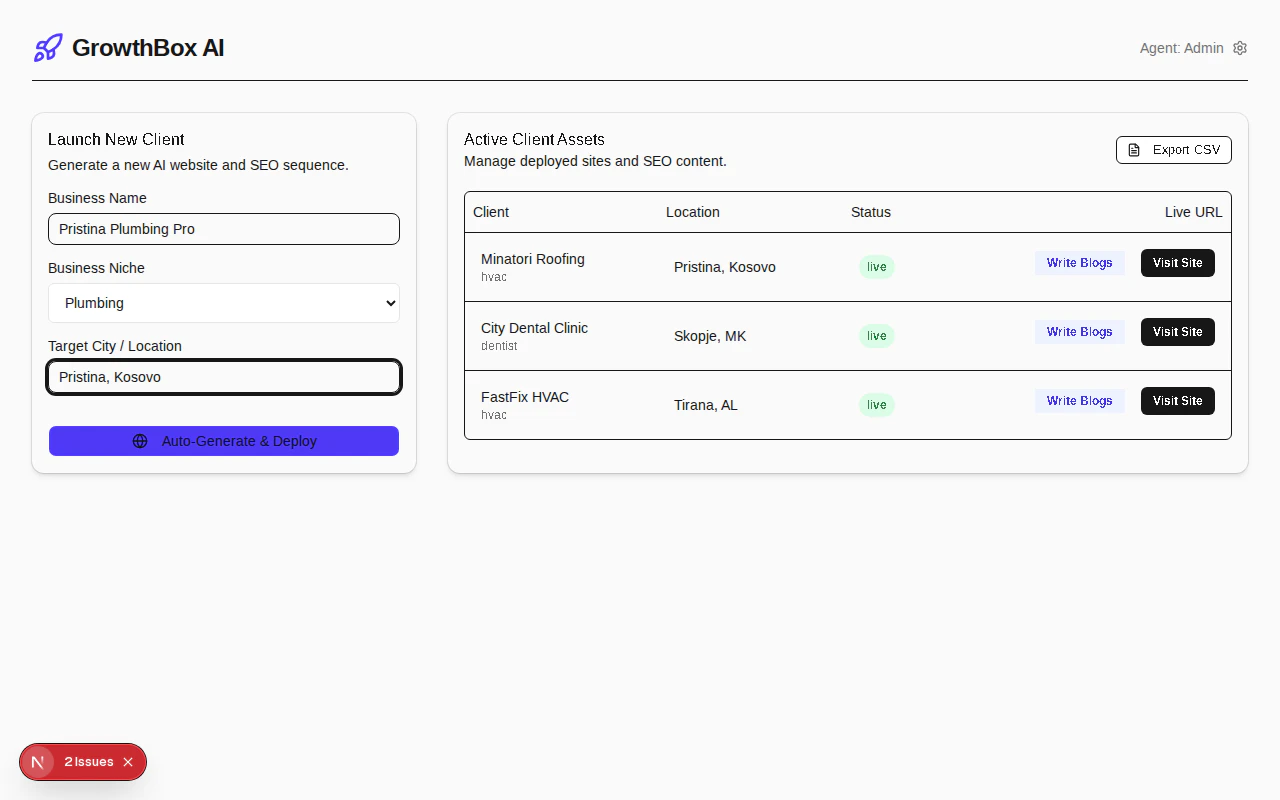 GrowthBox AI is a one-dashboard solution for local EO agencies and rank-and-rent operators. Enter...