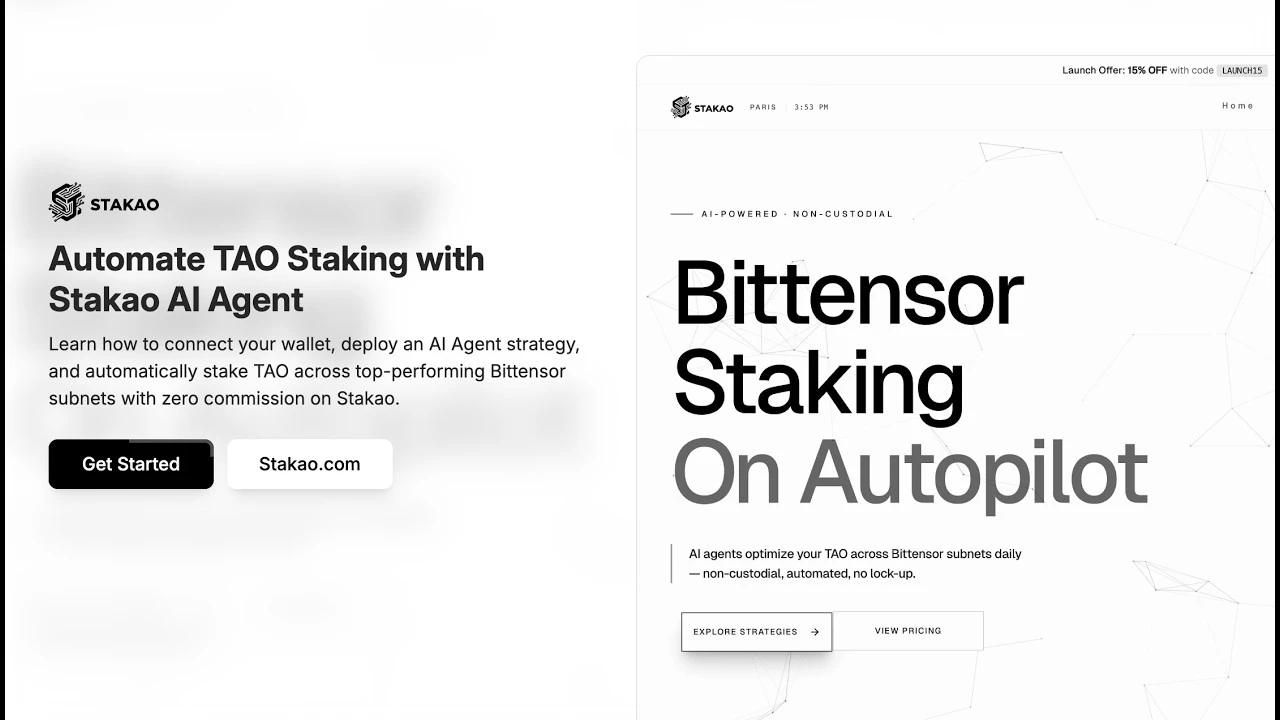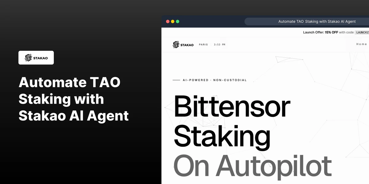 Stop managing TAO staking manually. Stakao deploys autonomous AI agents that optimize your portfo...