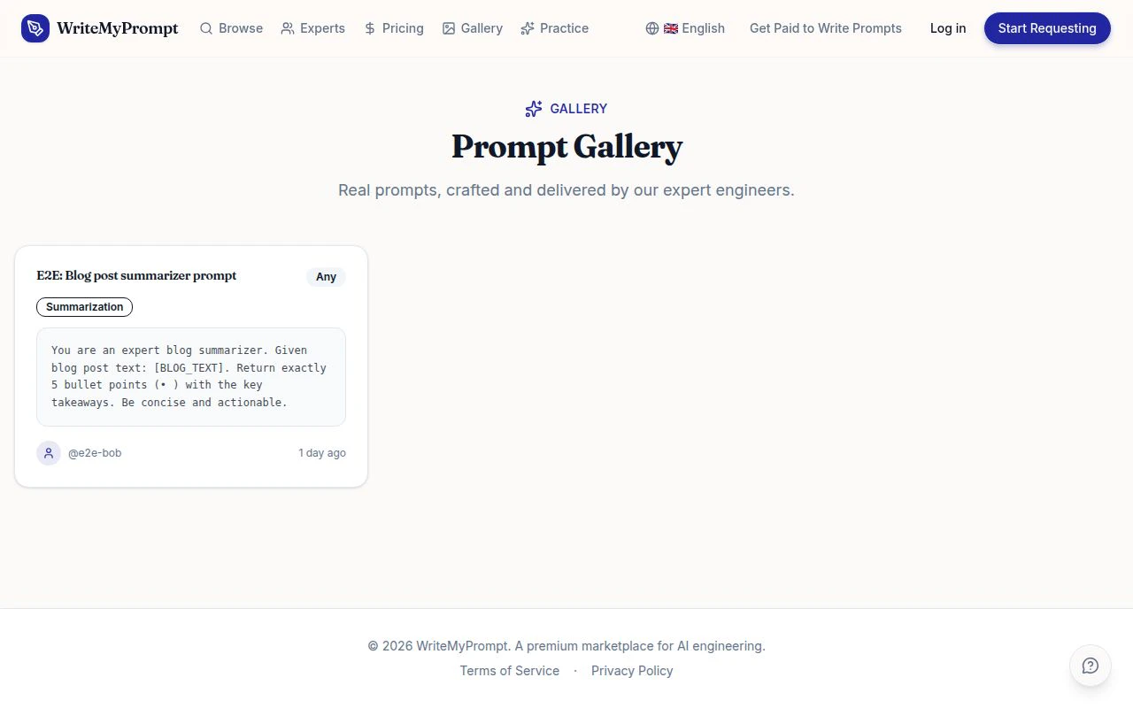 WriteMyPrompt is a marketplace connecting people who need great AI prompts with verified expert p...