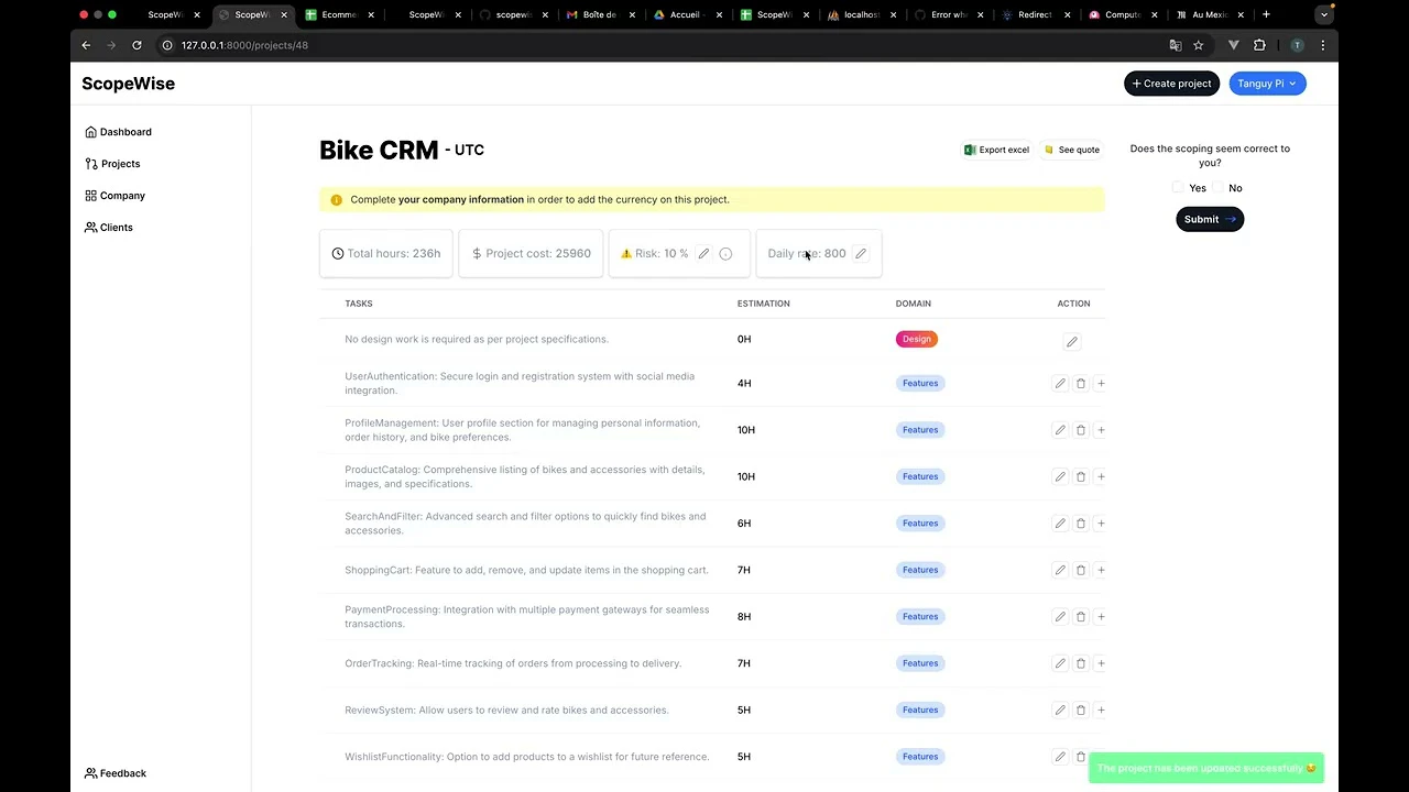 ScopeWise is a AI estimate and quote generator for IT project