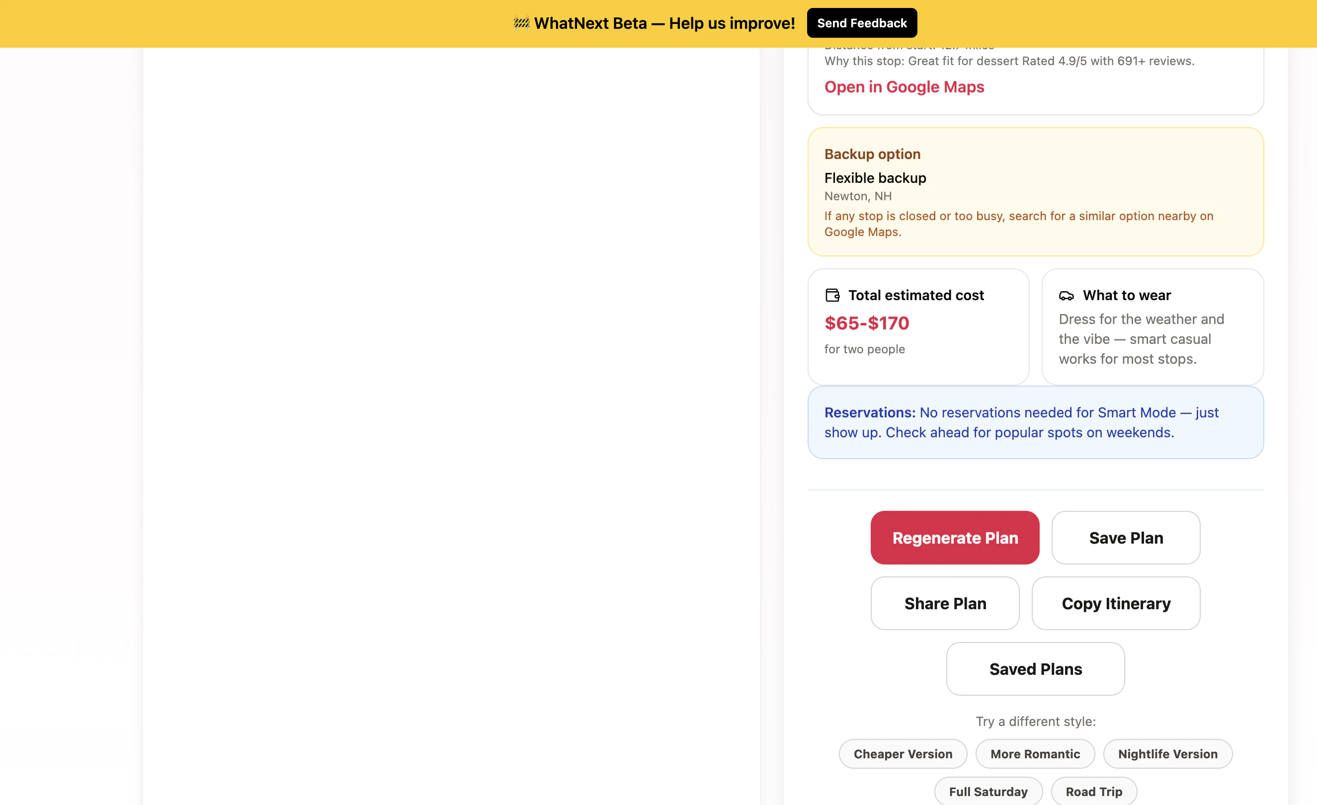 WhatNext instantly plans your perfect date night or outing in seconds. Get personalized itinerari...