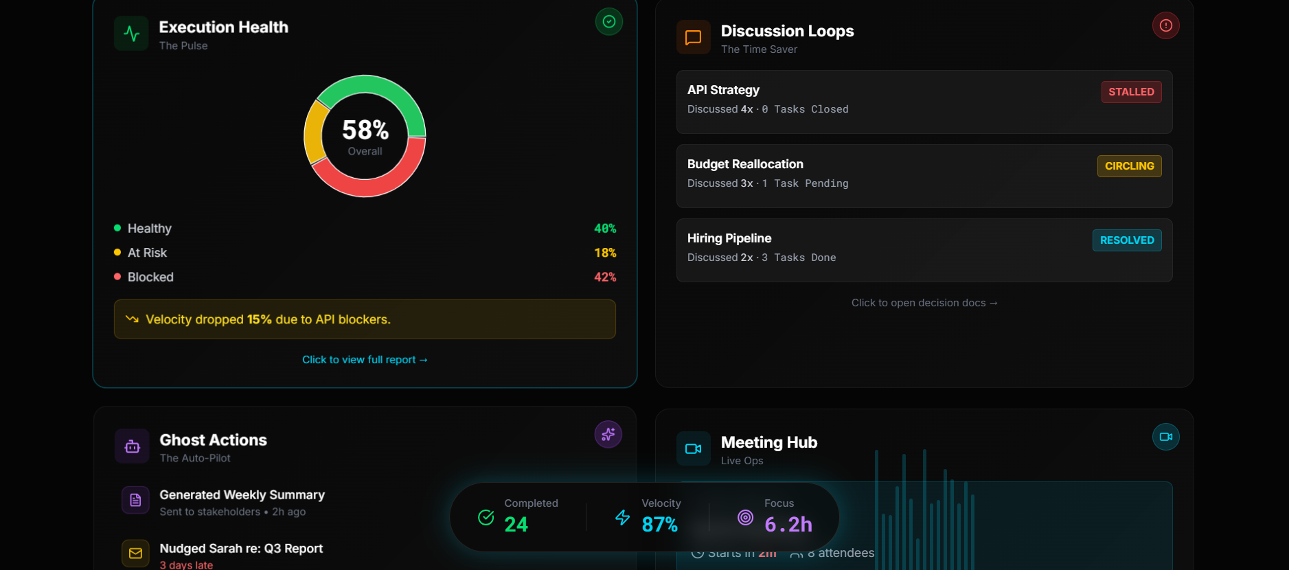 会議の議論を自動的に構造化されたタスクへ変換し、時間経過に伴う進捗を常時監視します。ボトルネックを検知してチームへリマインドを送り、作業の流れを途切れさせません。AIプロダクトマネージャーとして...
