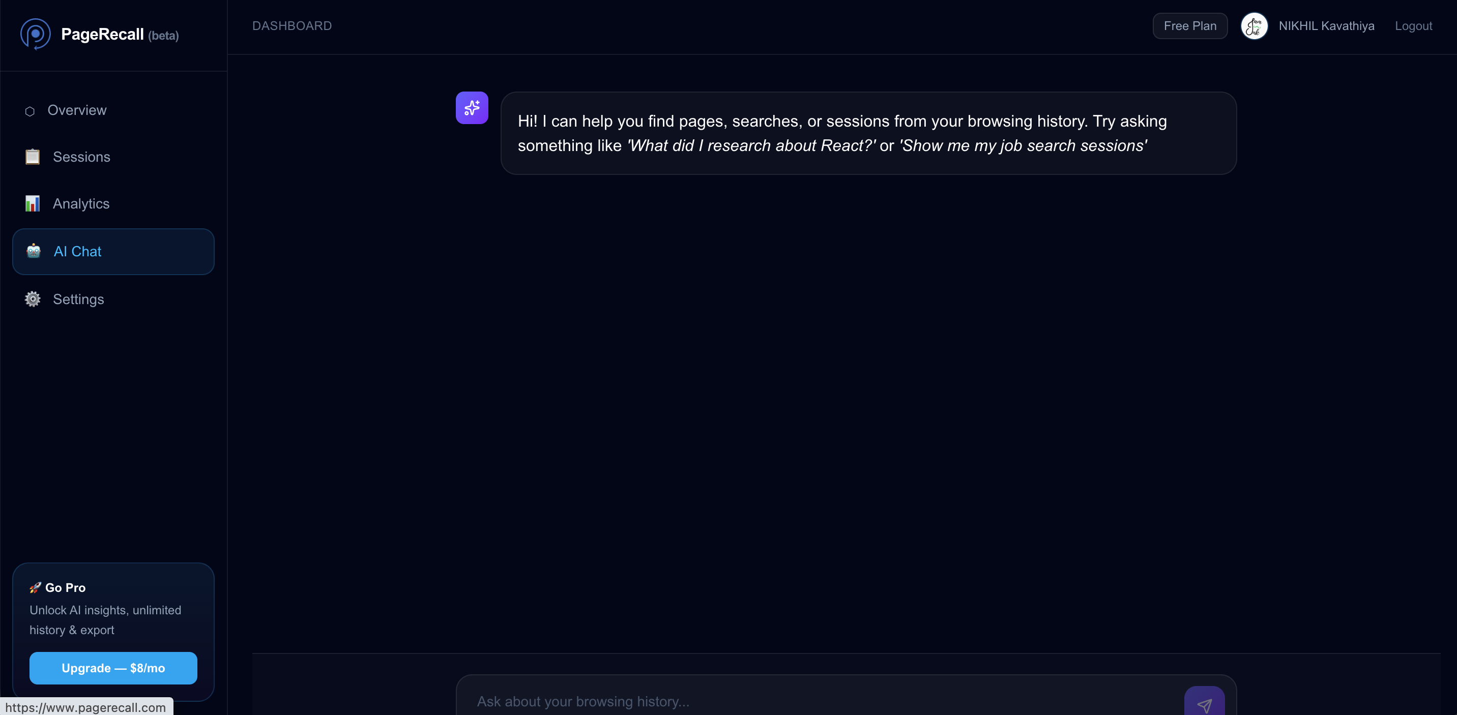 PageRecall is a privacy-first Chrome extension that automatically captures your browsing sessions...