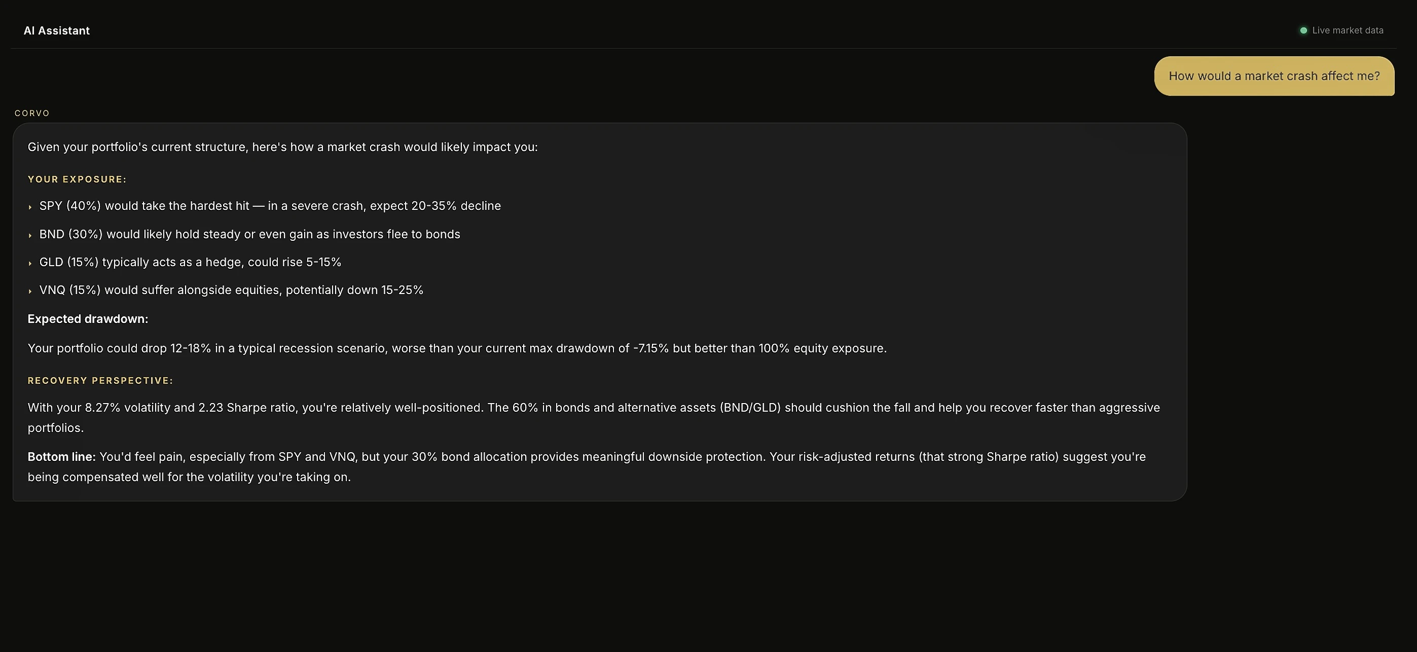 Corvo gives retail investors institutional-quality portfolio analytics for free. Add your tickers...