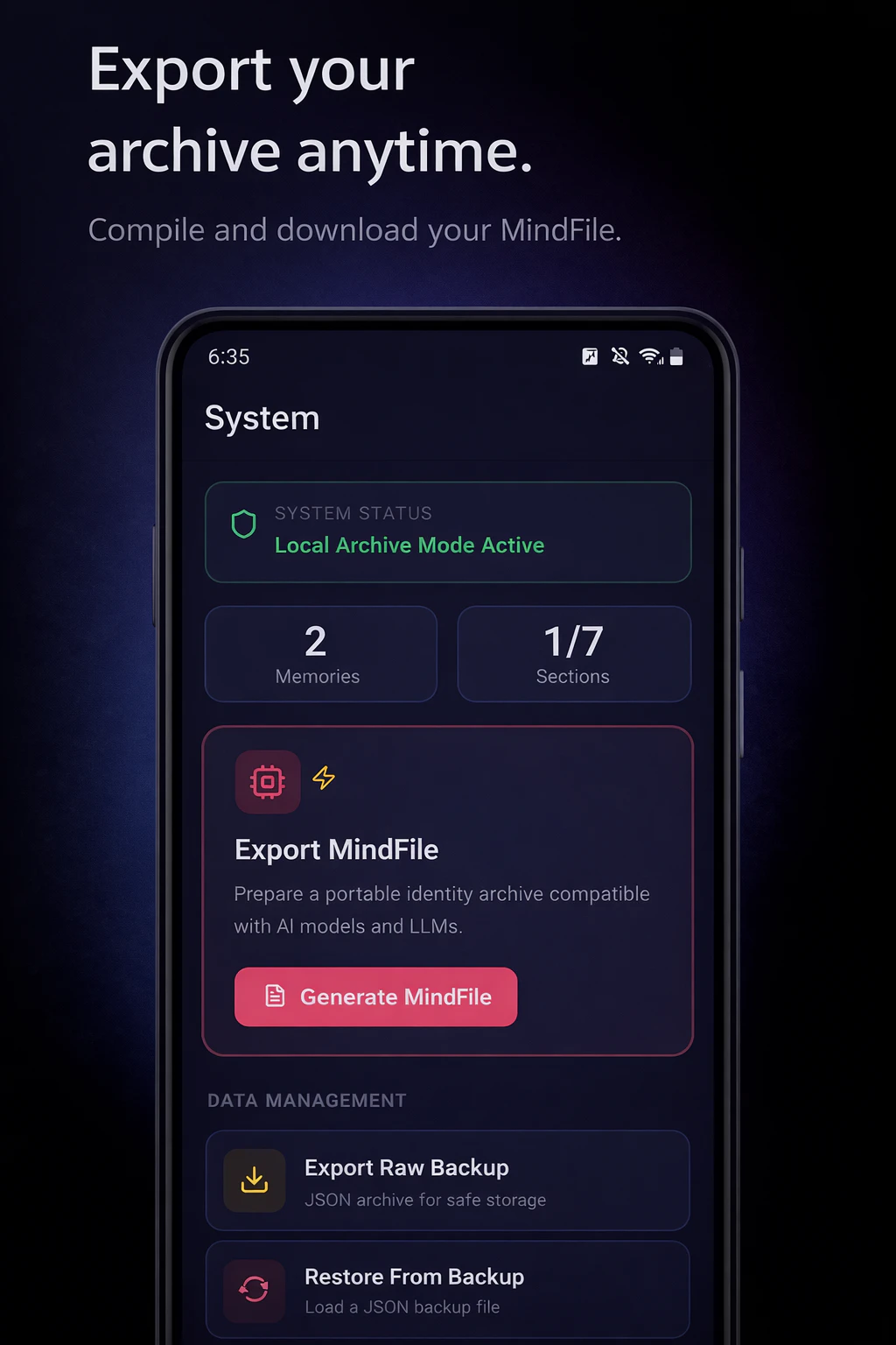 Your memories shouldn’t disappear. Embermind turns them into a structured MindFile you can export...