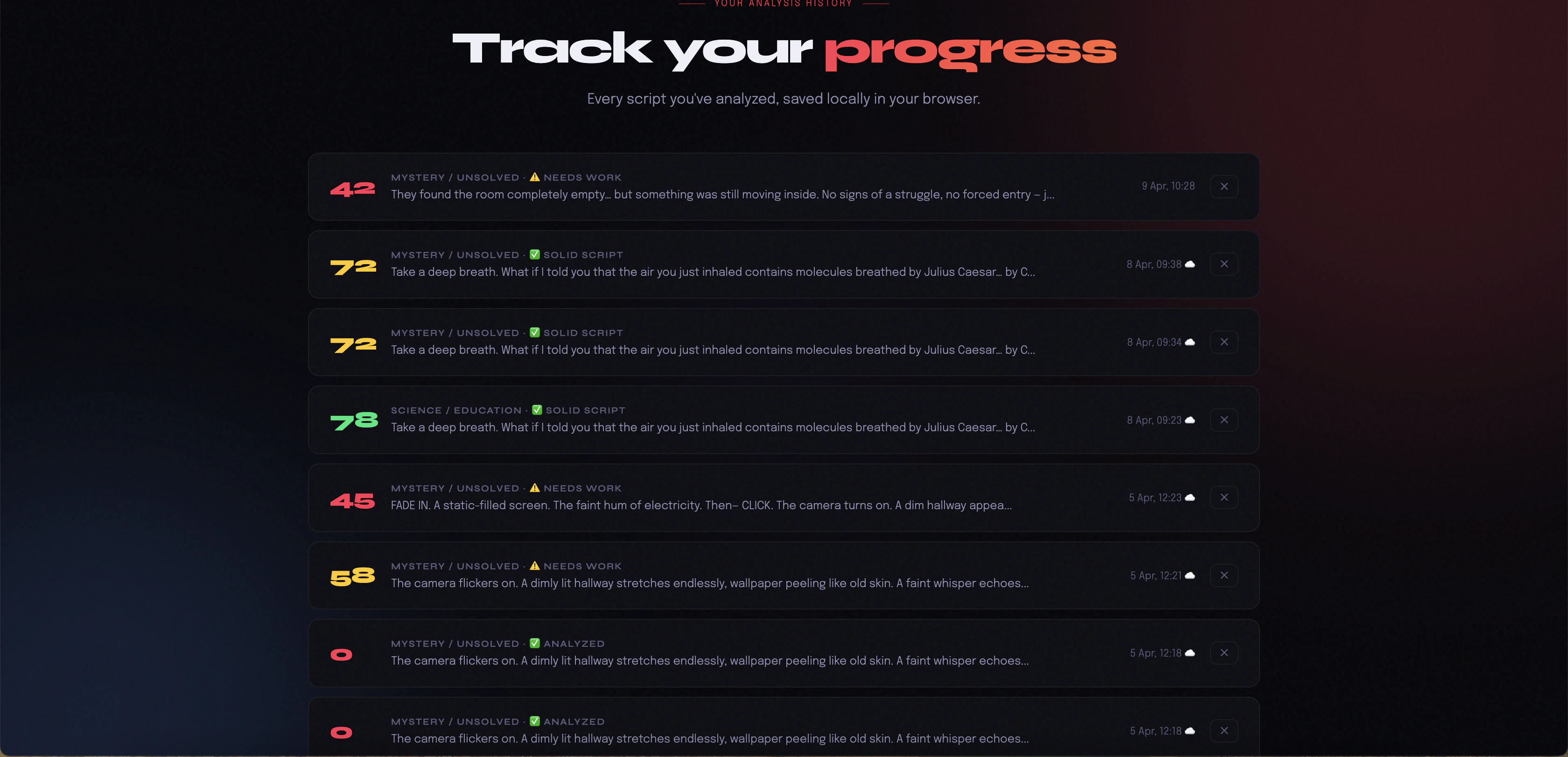 HookScorer is the complete YouTube creator suite for faceless channels. ⚡ Analyze scripts across ...