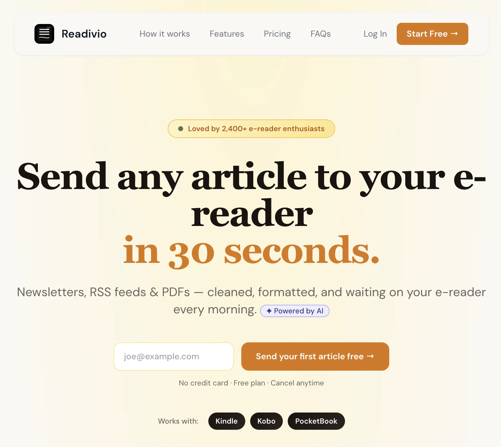 Readivio delivers your newsletters, articles, RSS feeds, and PDFs straight to your Kindle, Kobo, ...