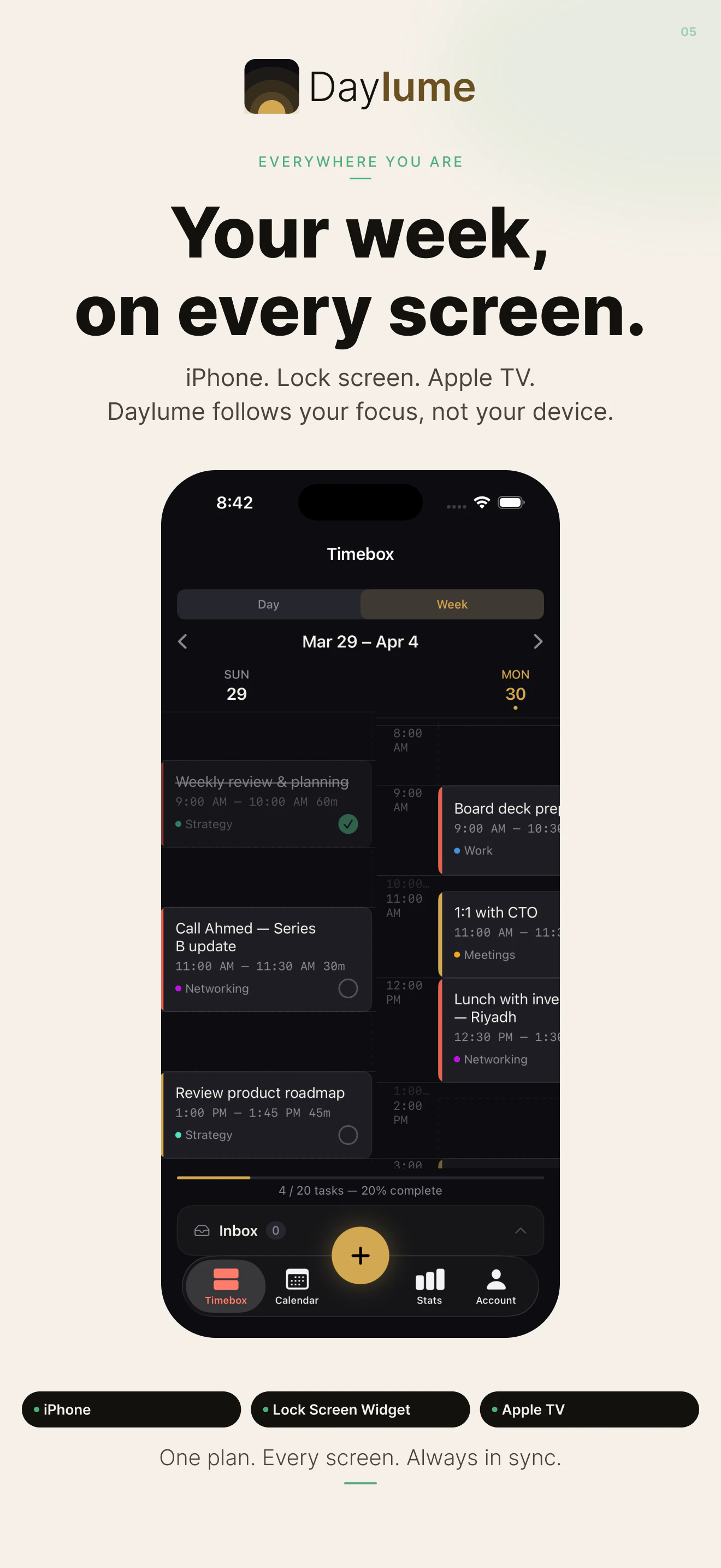 Most task apps make you do all the work. Daylume doesn't. Speak naturally — "prep board notes Sun...
