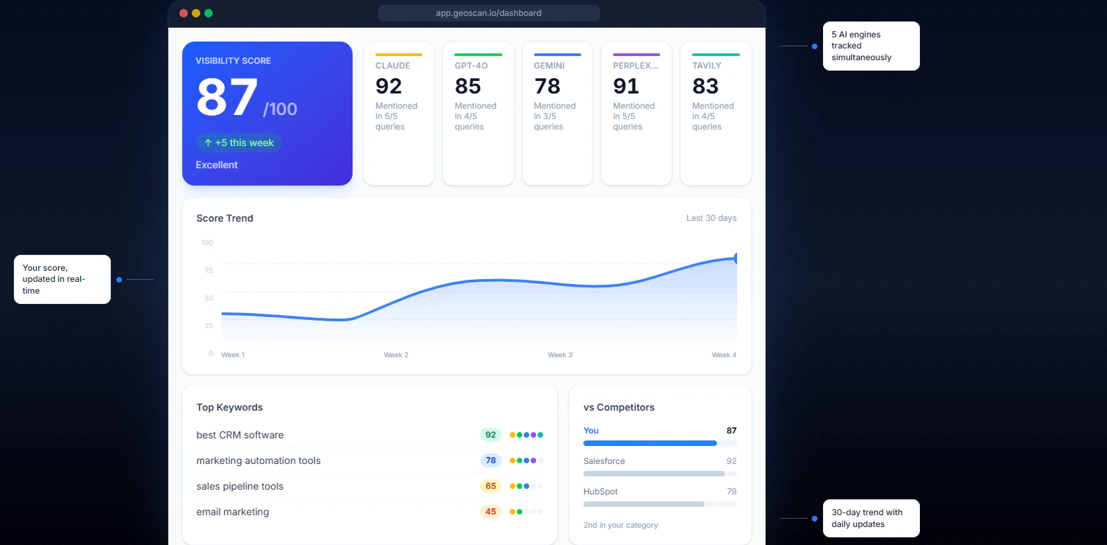 Track your brand visibility across ChatGPT, Claude & Gemini