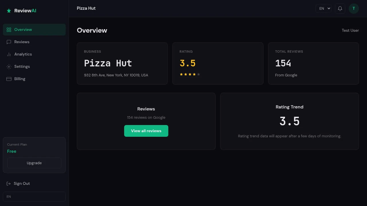 AI replies to every Google review and auto-publishes to Google. 3 tones: warm, professional, form...