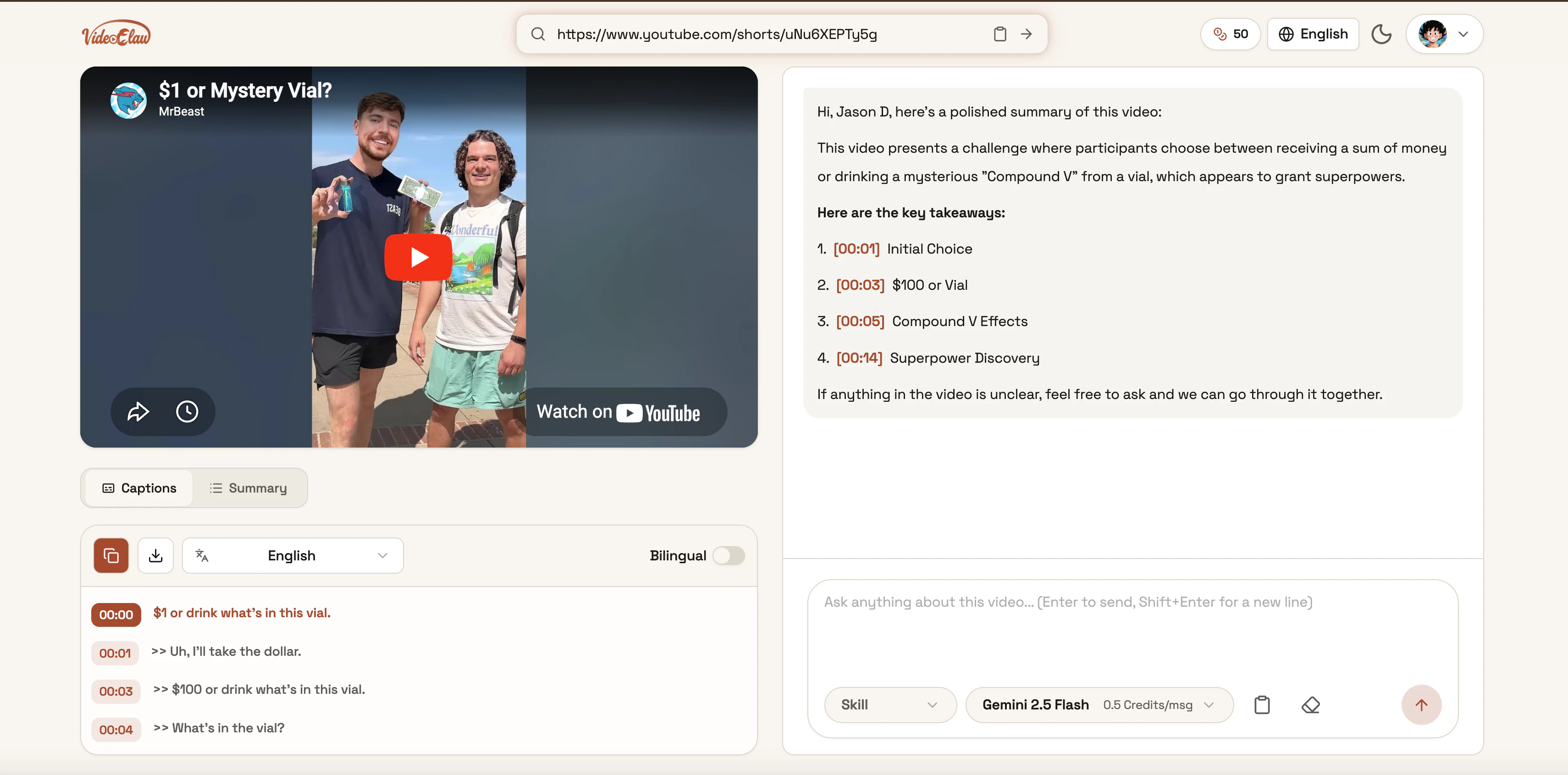 Get a YouTube AI summary, search the full transcript, jump to exact timestamps, and ask follow-up...