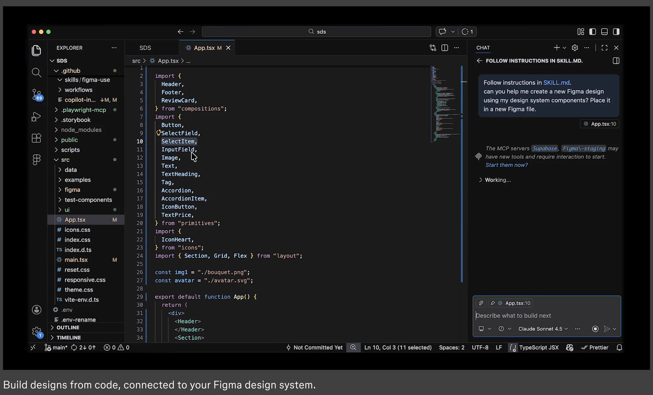 Design with AI agents, connected to your design system