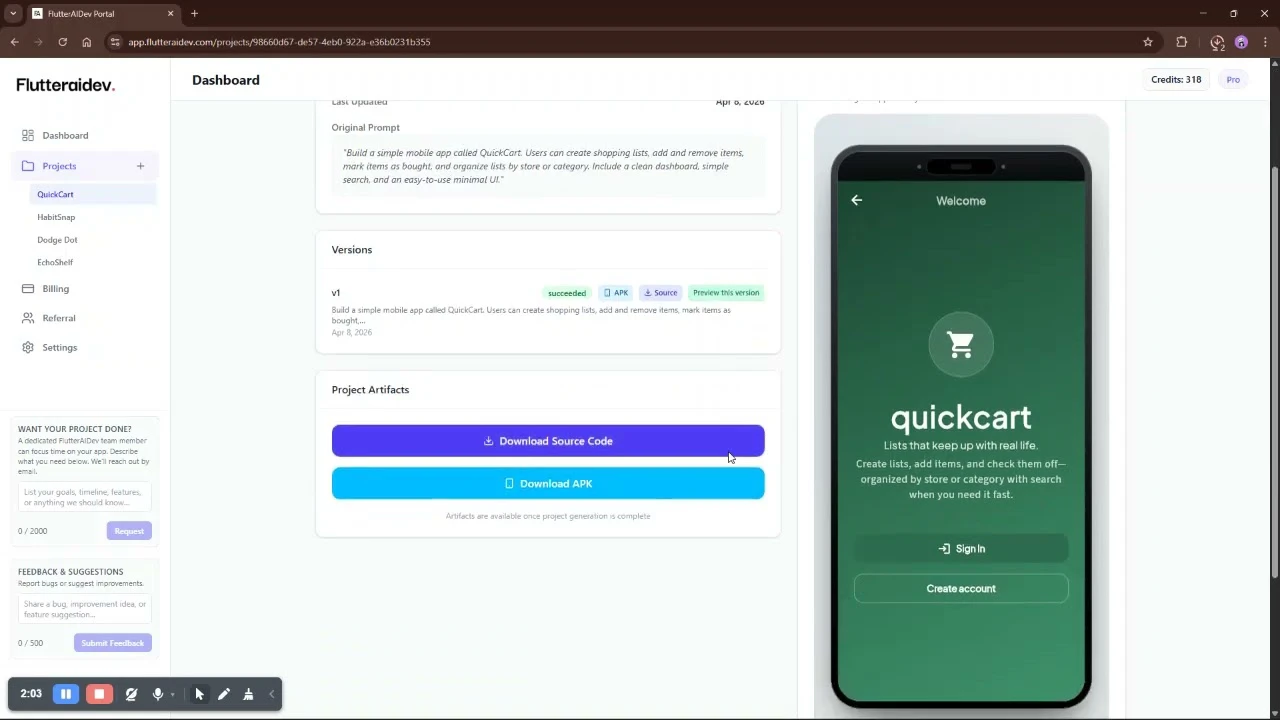 Describe your app idea and FlutterAIDev generates clean Flutter code with a real preview. Export ...