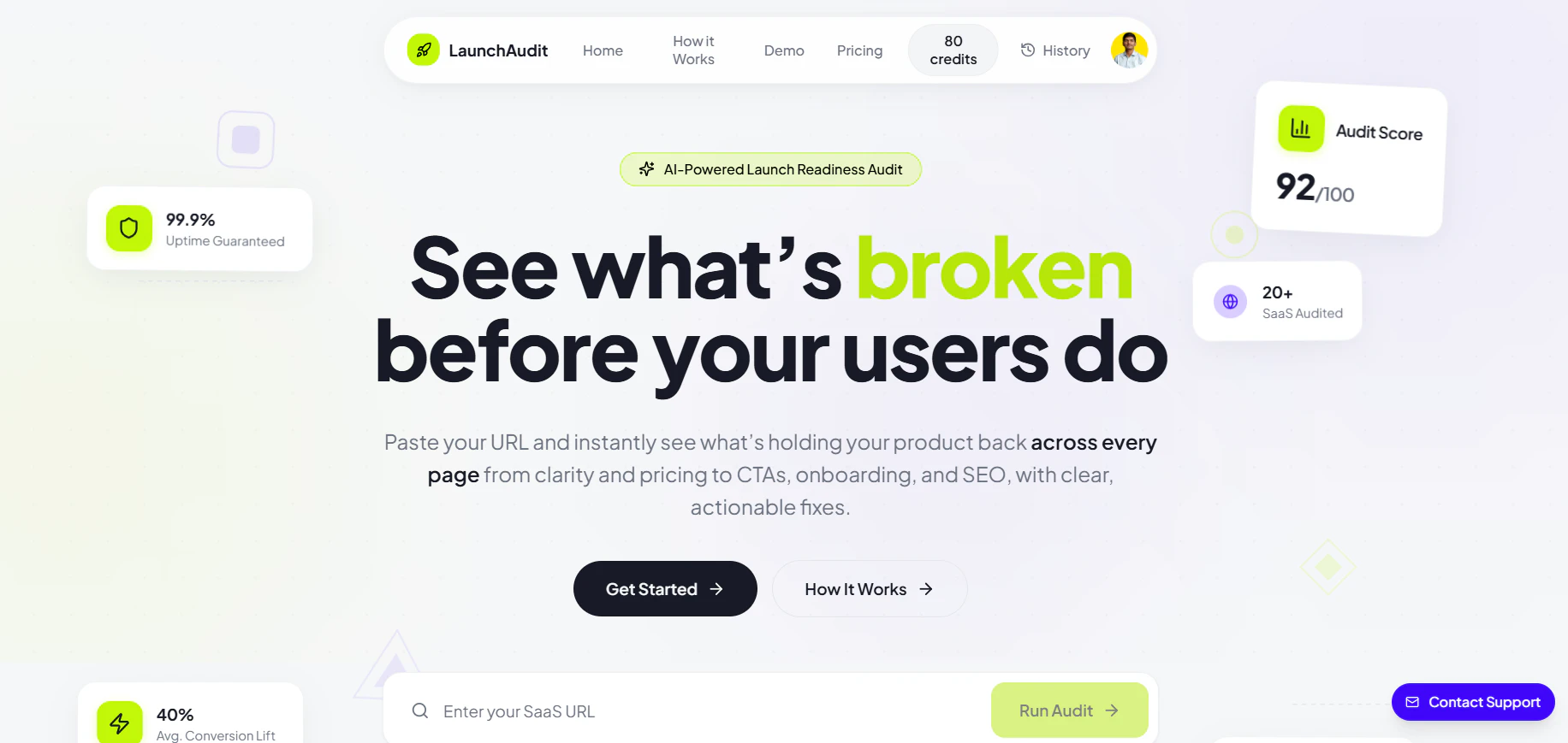 Paste your URL. AI tells you if your SaaS is ready to launch