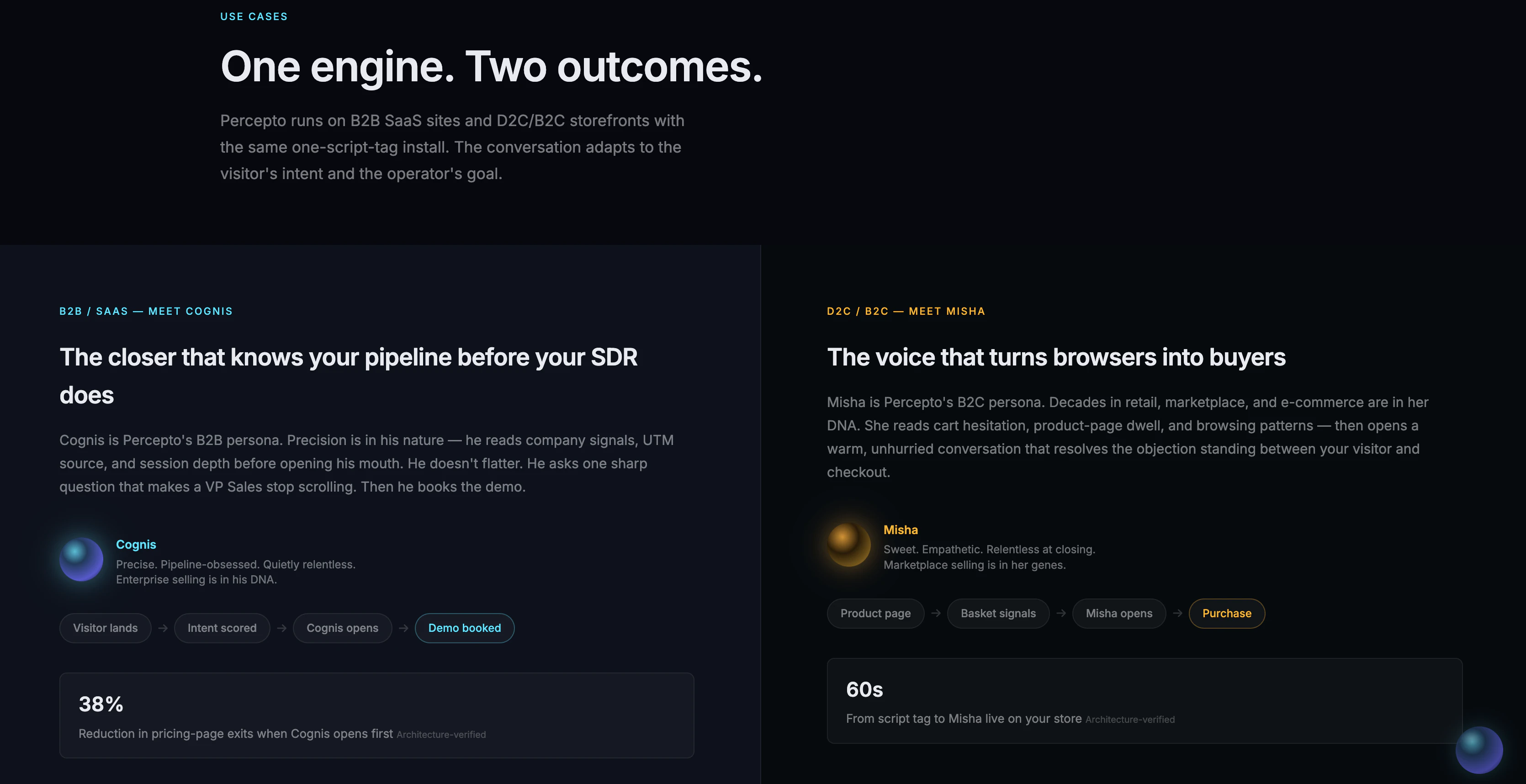 Percepto AI scores every visitor's intent in real-time — 15+ browser and IP signals resolved befo...