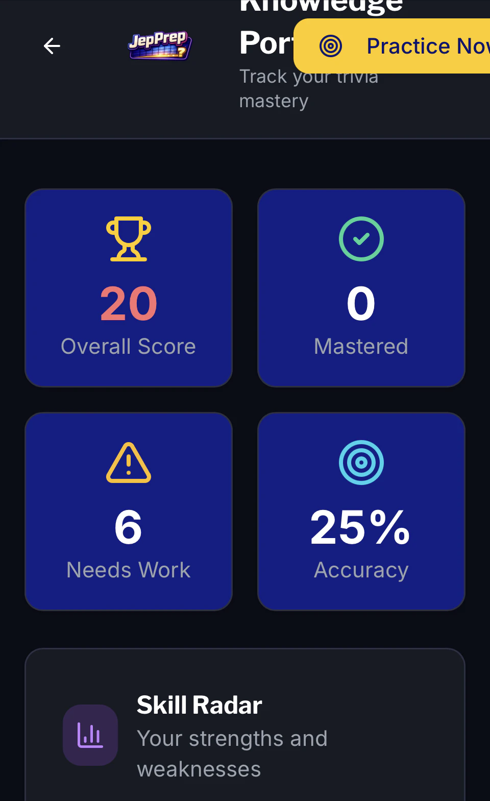 AI-powered trivia training with 514,000+ Jeopardy-style practice questions across 54,000 categori...