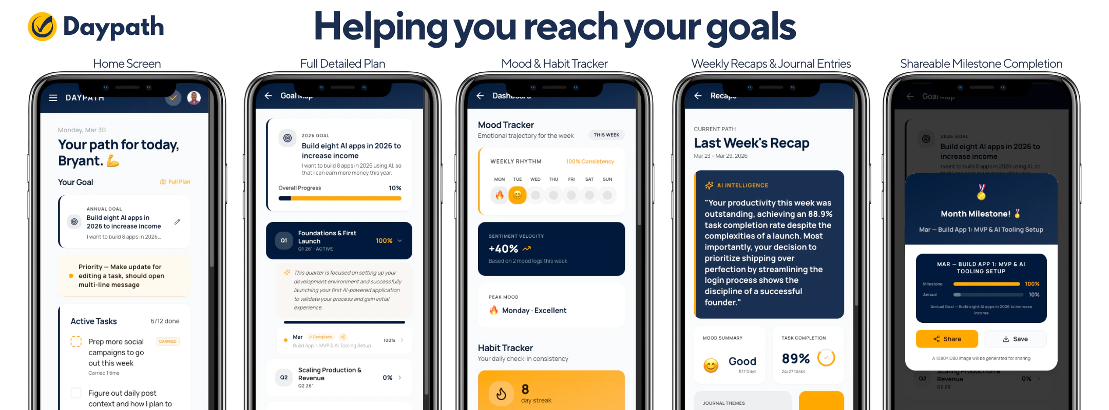 Most goal apps help you set goals. Daypath helps you actually finish them. Tell Daypath your bigg...