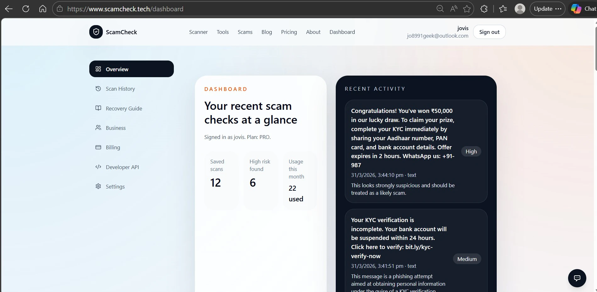 Paste any suspicious text, URL, or screenshot — ScamCheck gives you an instant AI verdict with a ...