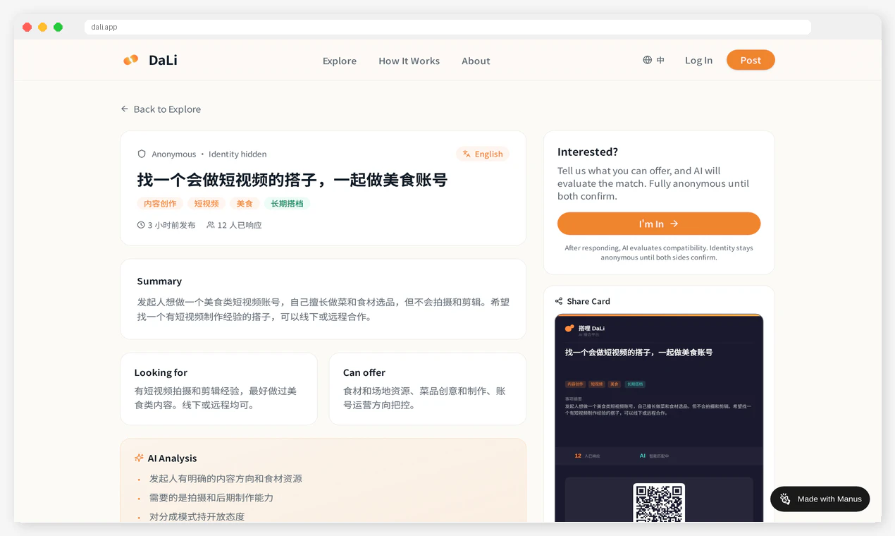 DaLi helps you find the right person to build with. Instead of searching endlessly, you simply de...