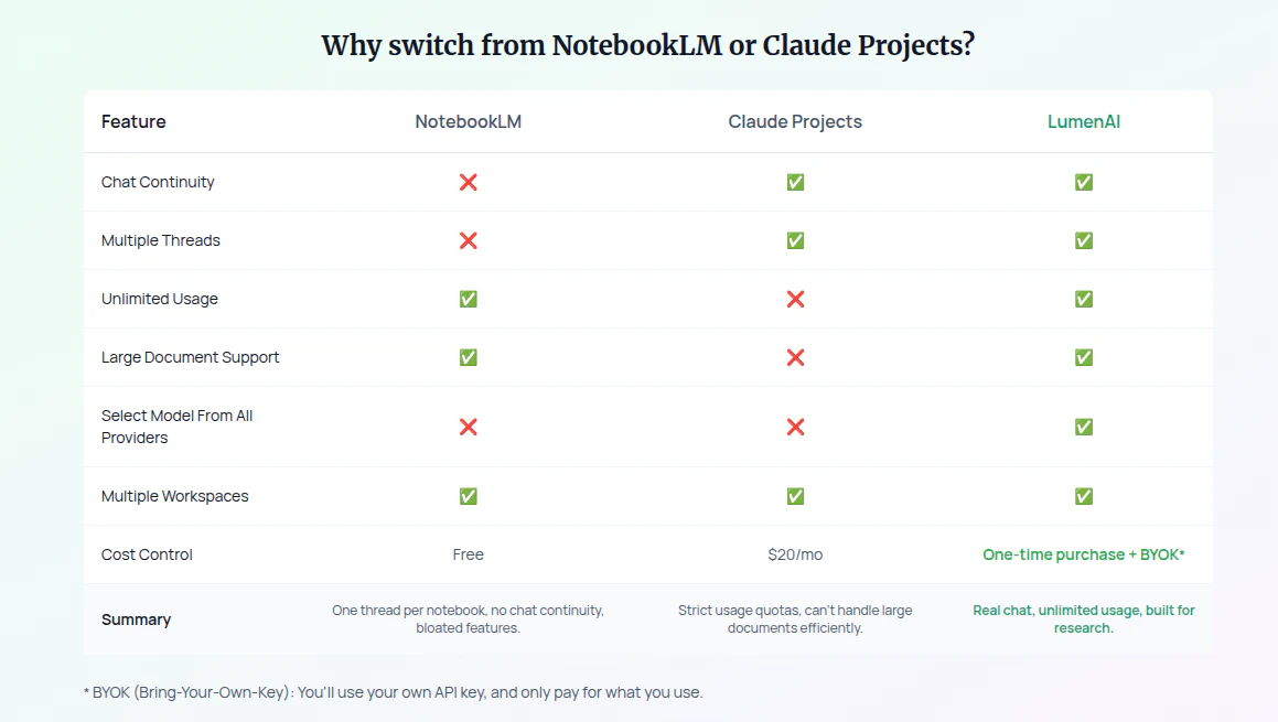 We built LumenAI to solve a single problem: NotebookLM doesn't have real chat functionality. Uplo...