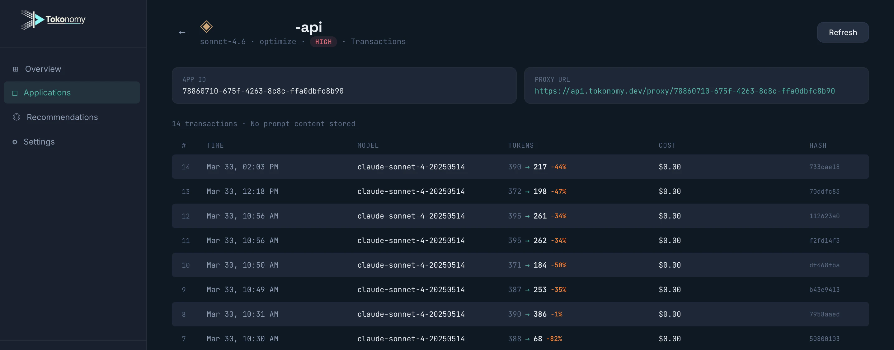 Tokonomy is a privacy-first token optimization proxy that automatically reduces LLM costs without...