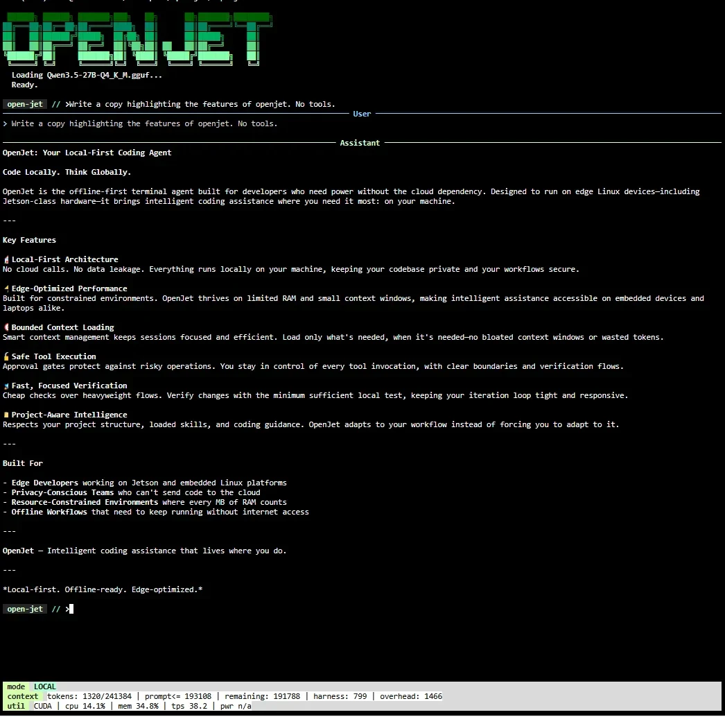 OpenJet is a terminal-based AI coding assistant that sets up your local LLM stack in seconds. It ...