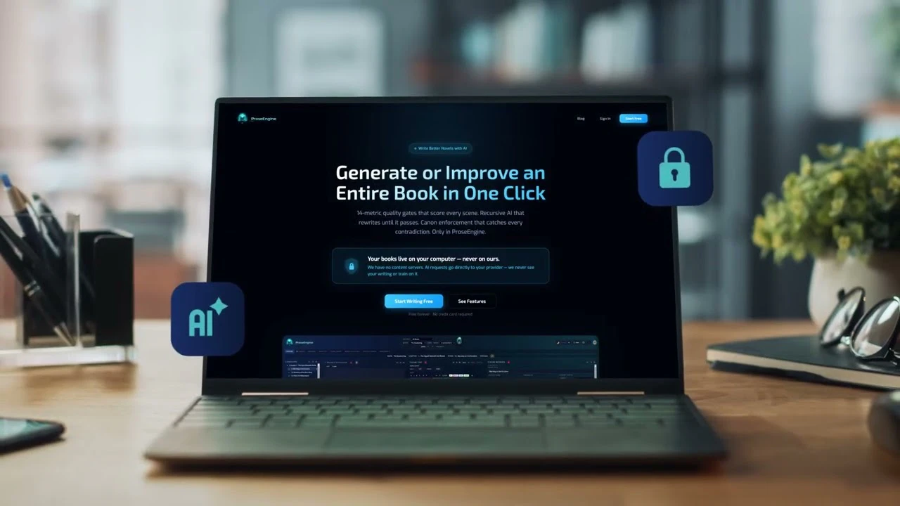 The only AI writing studio that scores, enforces, and improves your prose — not just generates it...