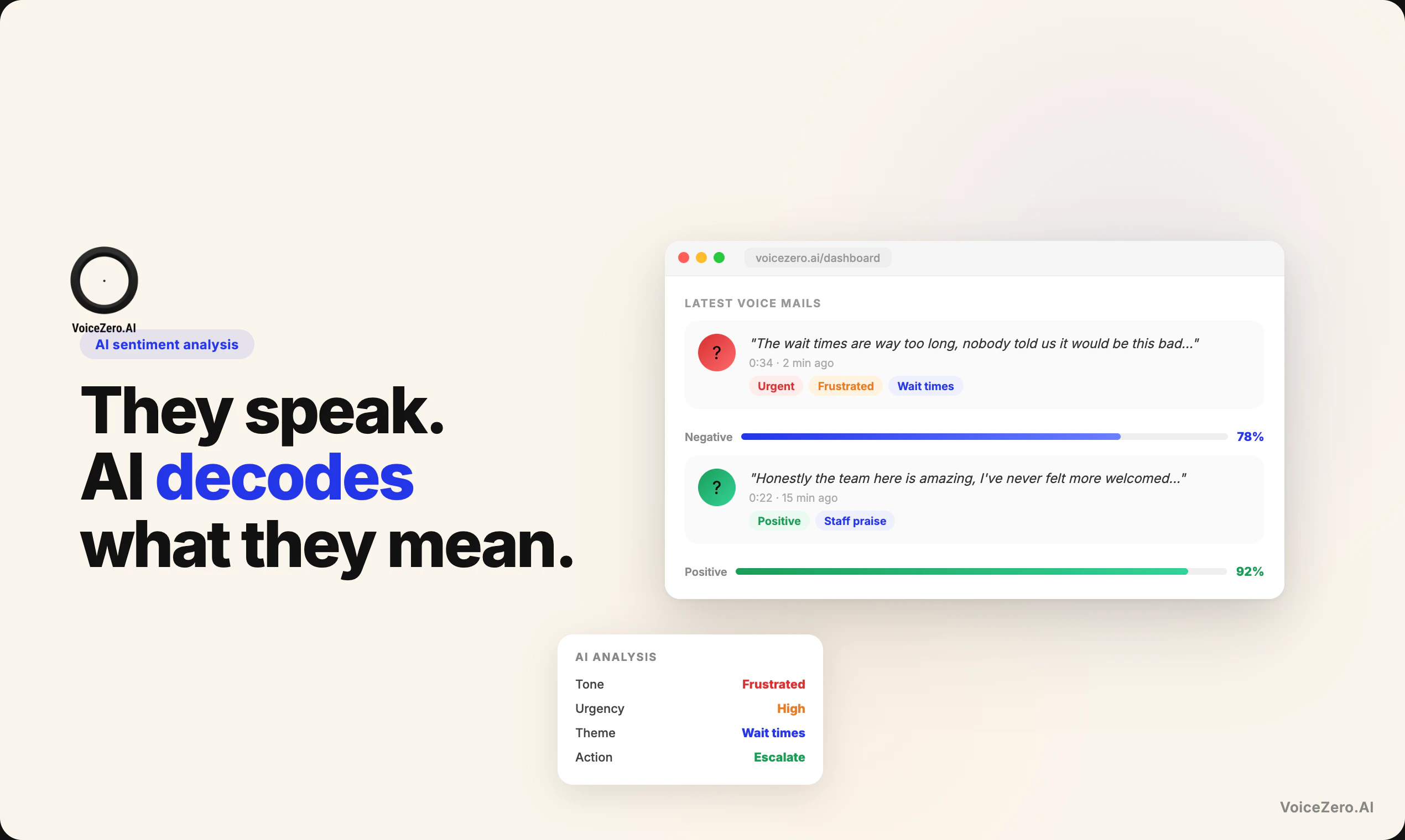 Surveys miss 90% of what people mean. VoiceZero captures anonymous voice feedback via QR code, Wh...