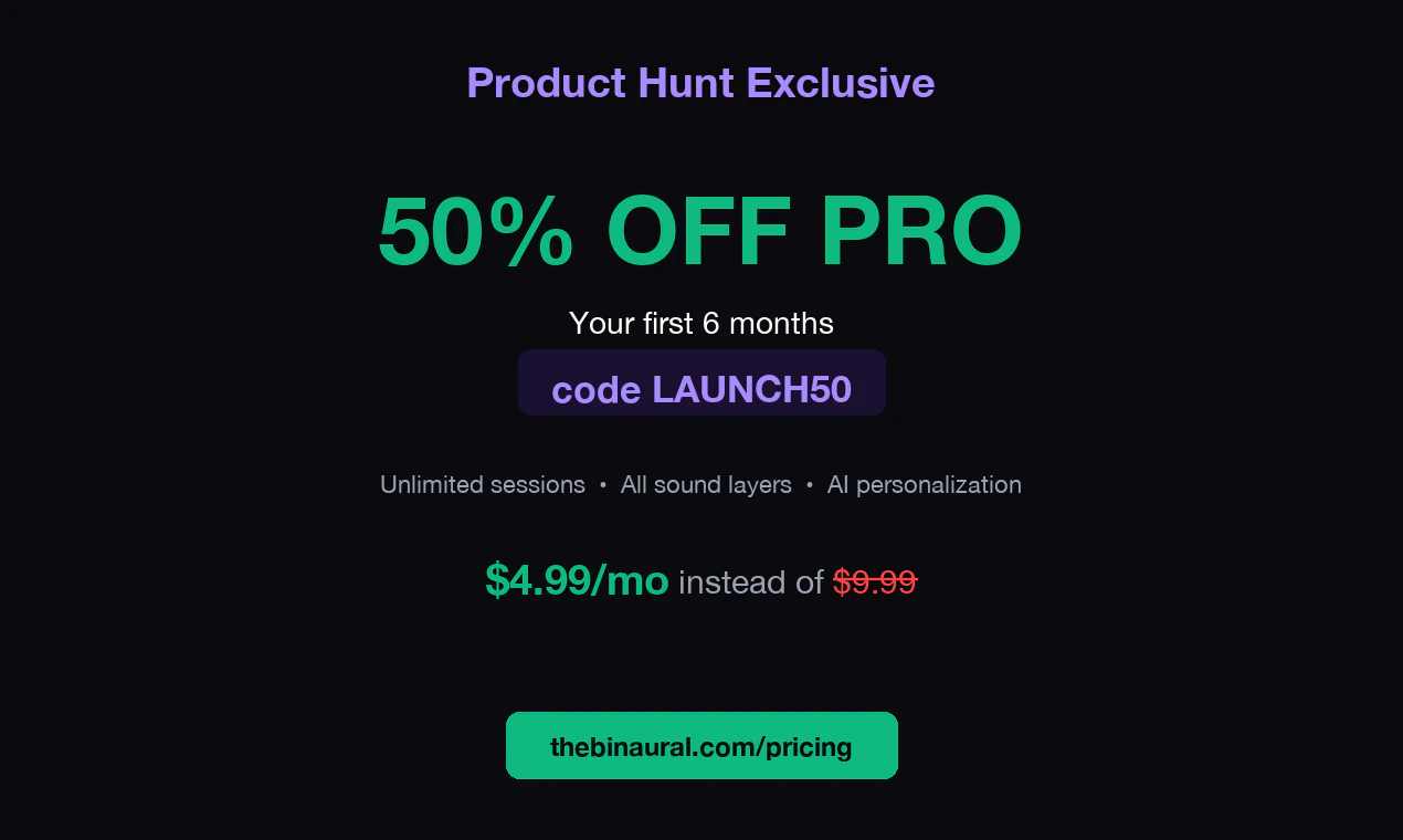 Most "binaural beats" apps play the same pre-recorded MP3s to everyone. The Binaural generates re...