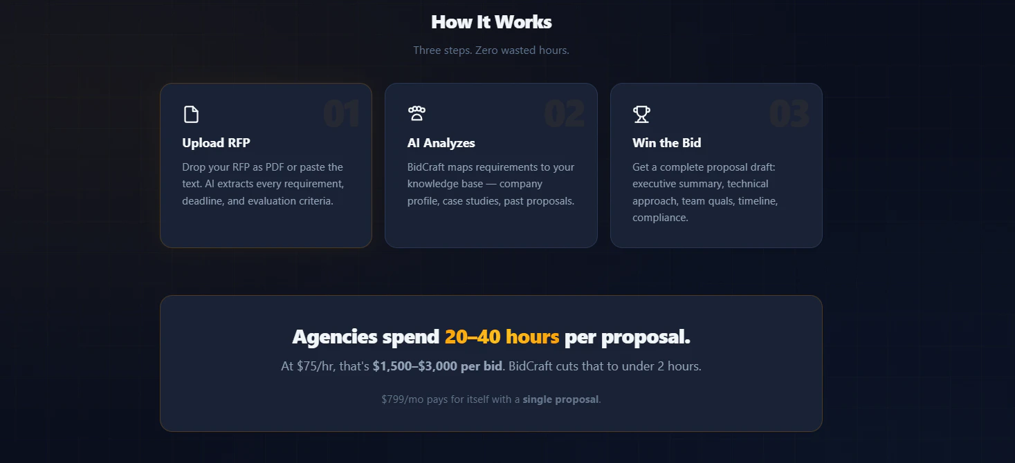 Win more bids 10x faster. Upload any RFP, get a professional proposal draft in minutes. AI-powere...