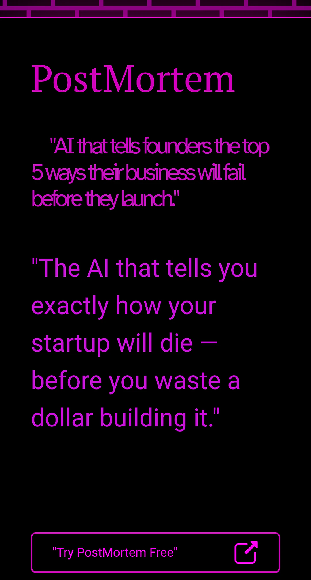 "AI that tells founders the top 5 ways their business will fail before they launch."